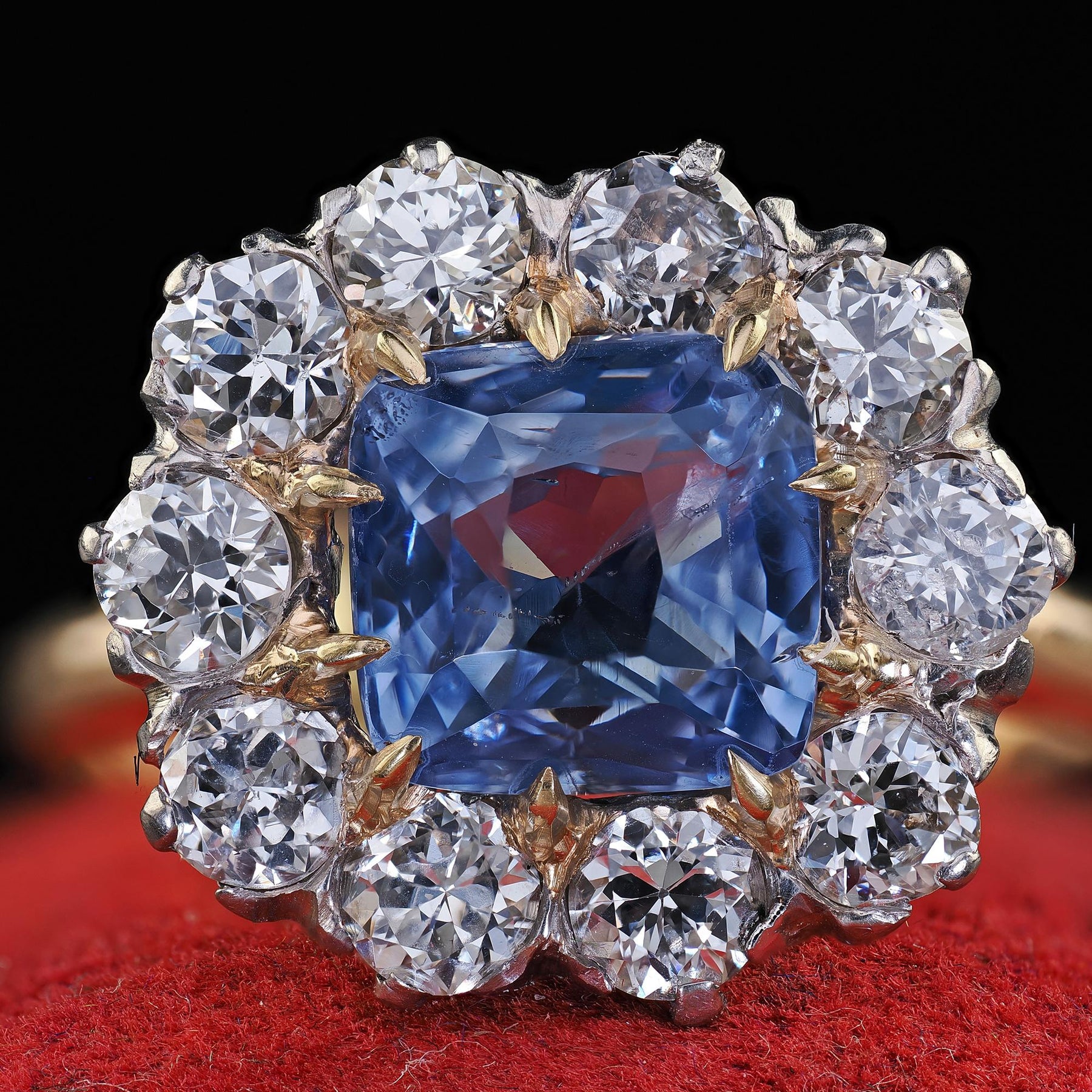 Antique Edwardian 14K Gold Platinum Sapphire and Diamond Engagement Ring - GIA