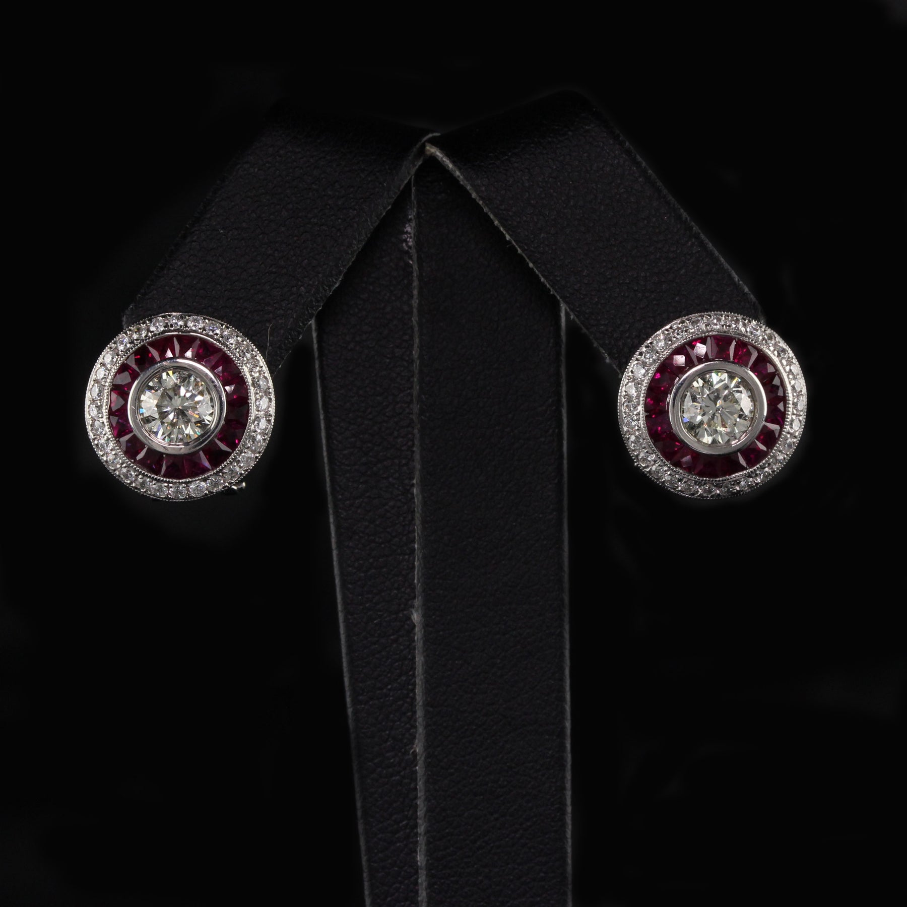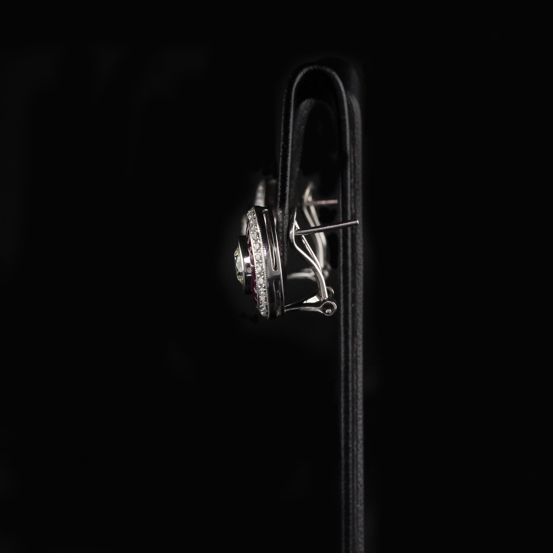 Gorgeous ruby and diamond earrings with dazzling center stone.