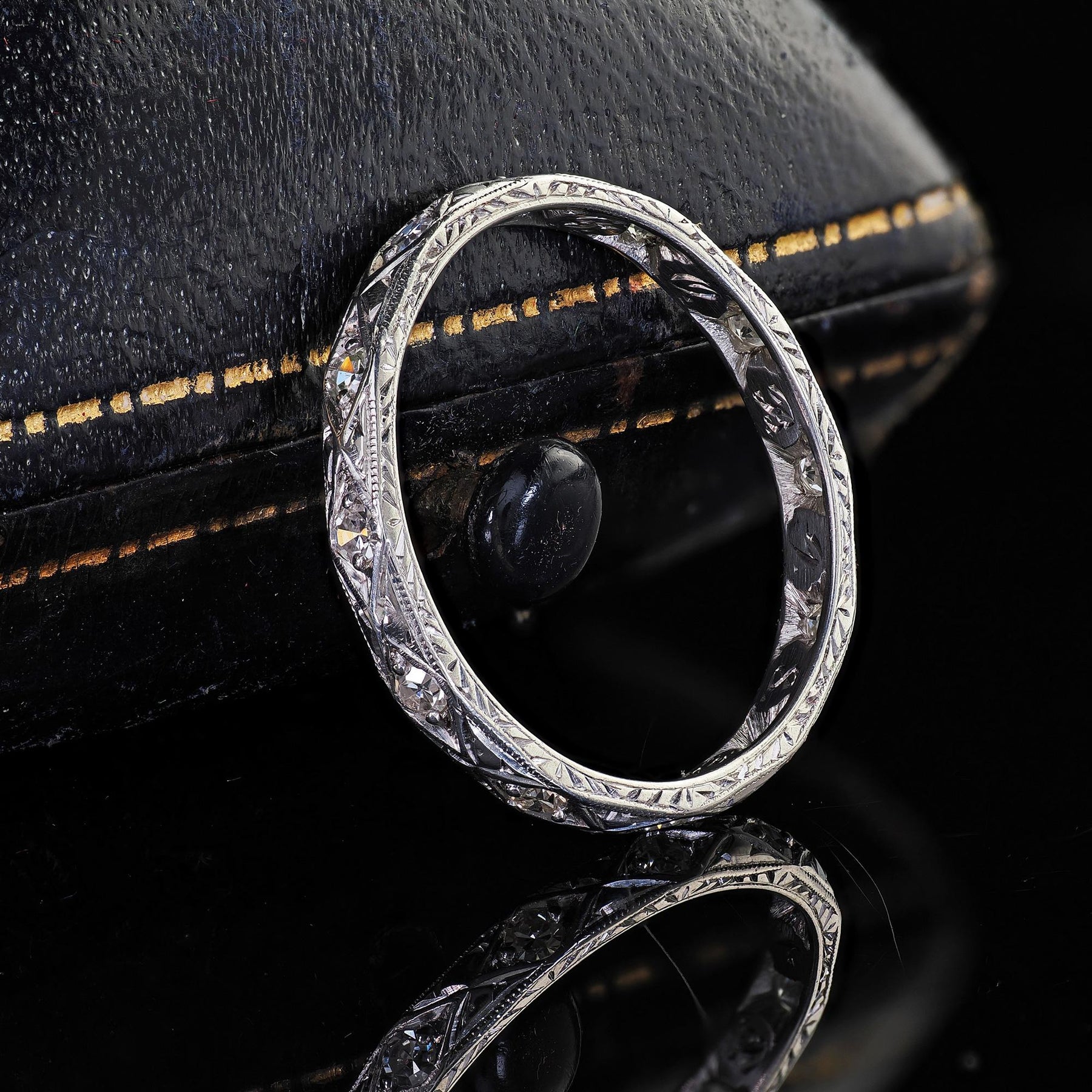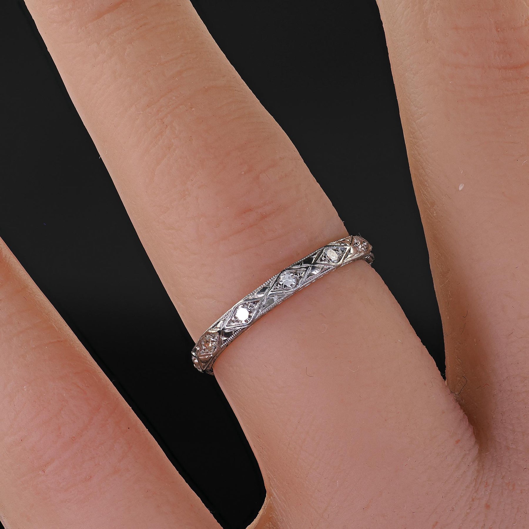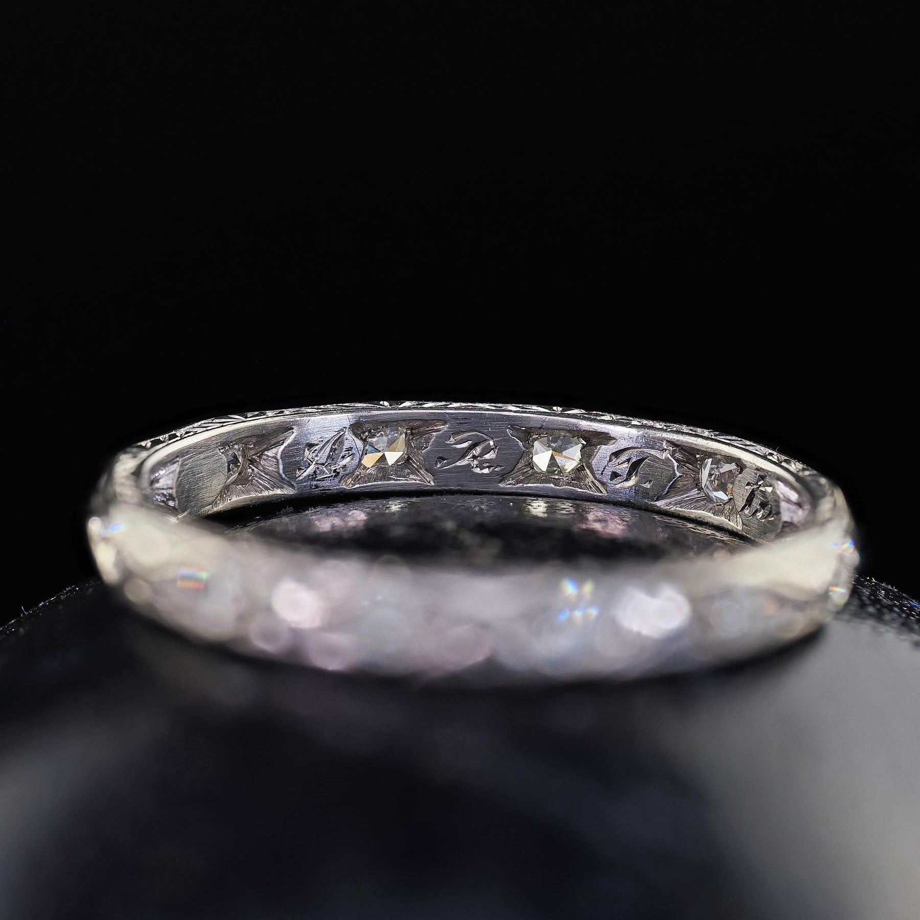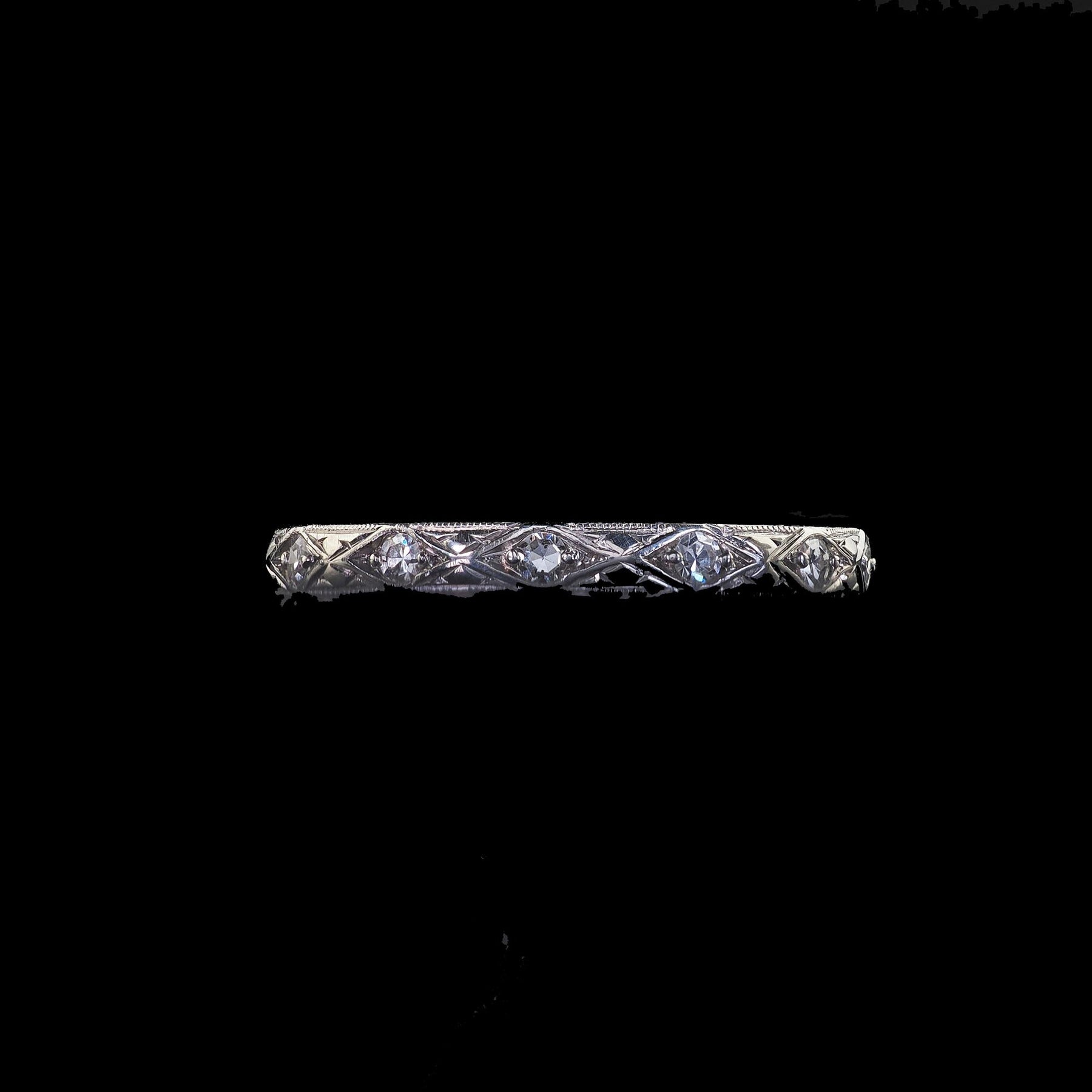 Antique Art Deco Platinum Single Cut Diamond Engraved Eternity Band - Size 6