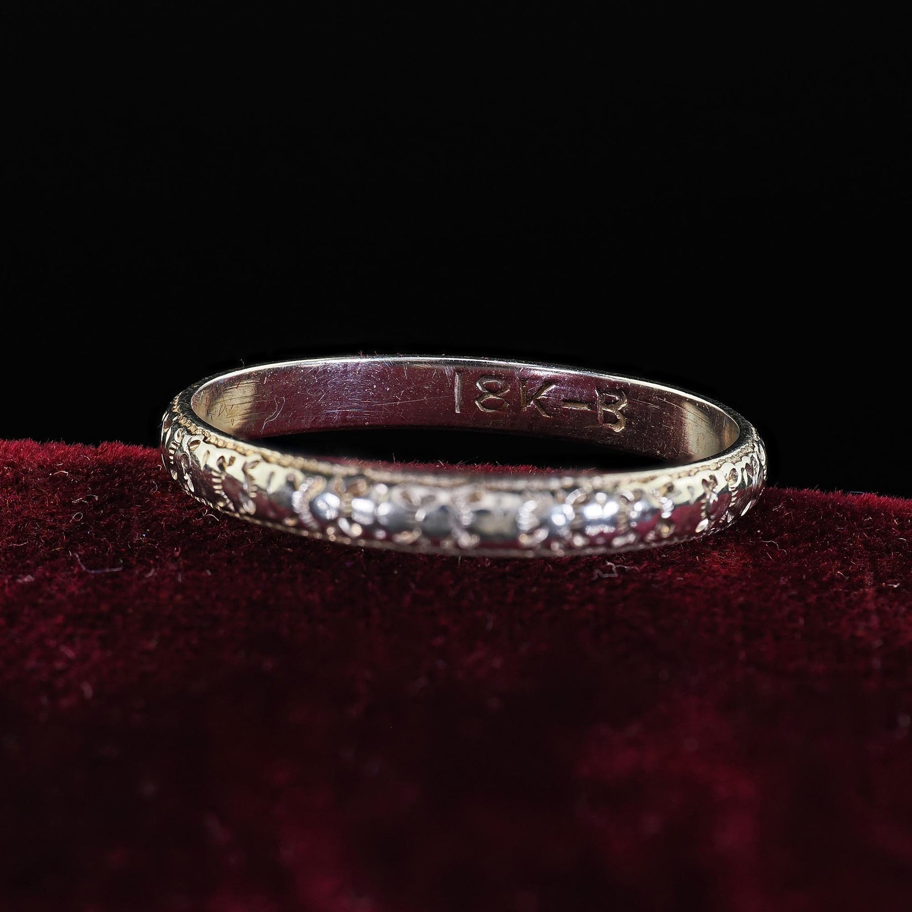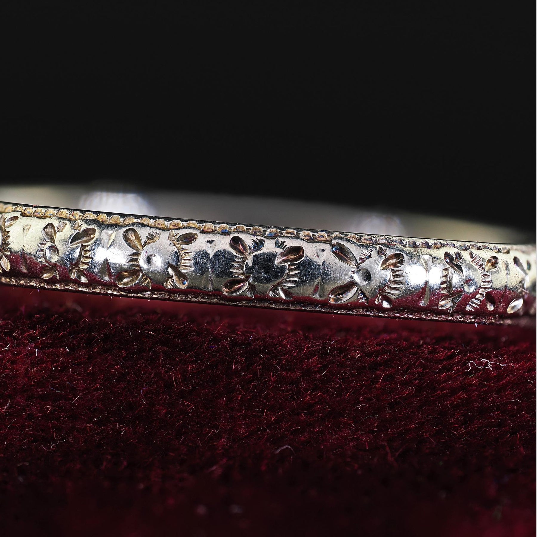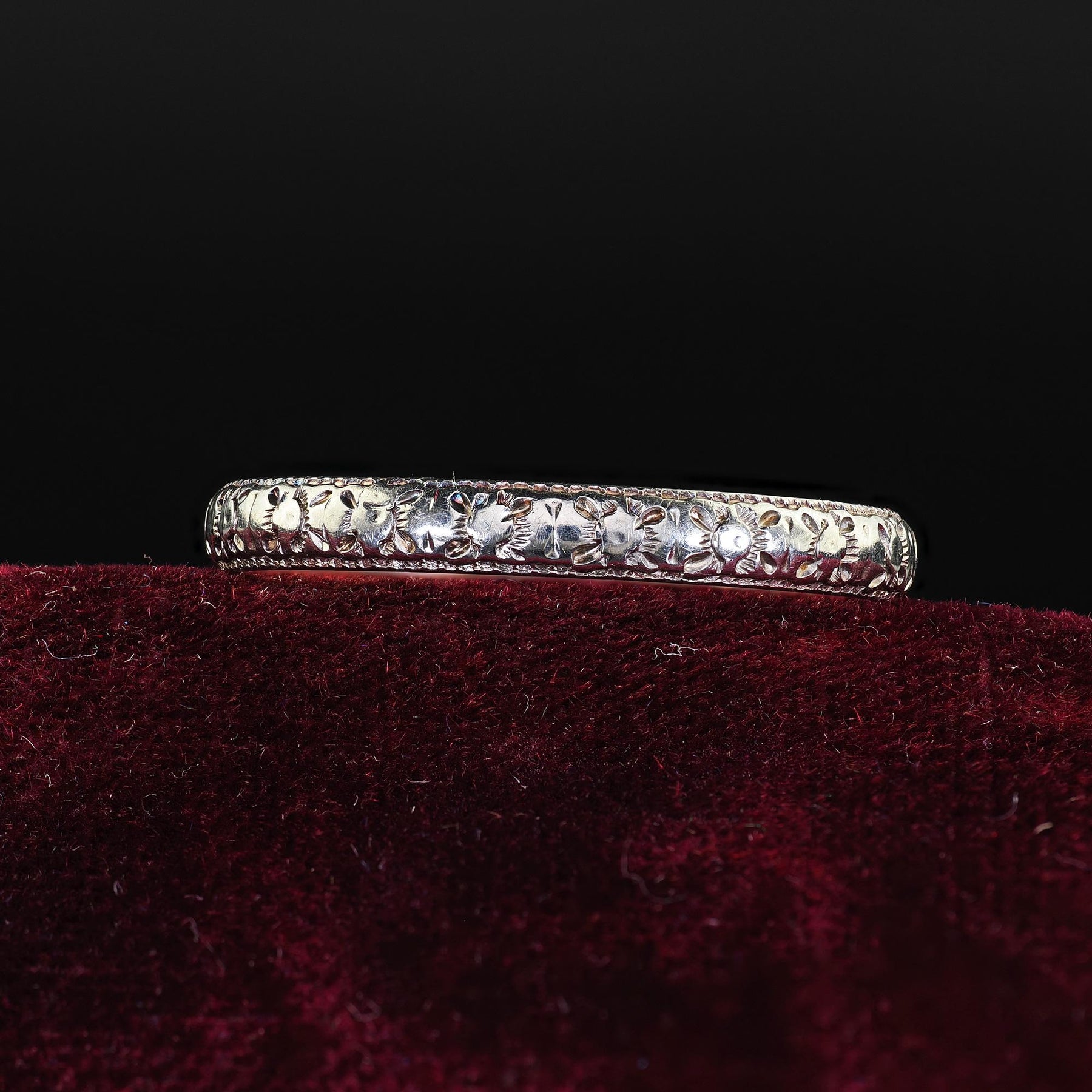 Antique Art Deco 18K White Gold Engraved Blossom Wedding Band Ring - Size 6 1/4