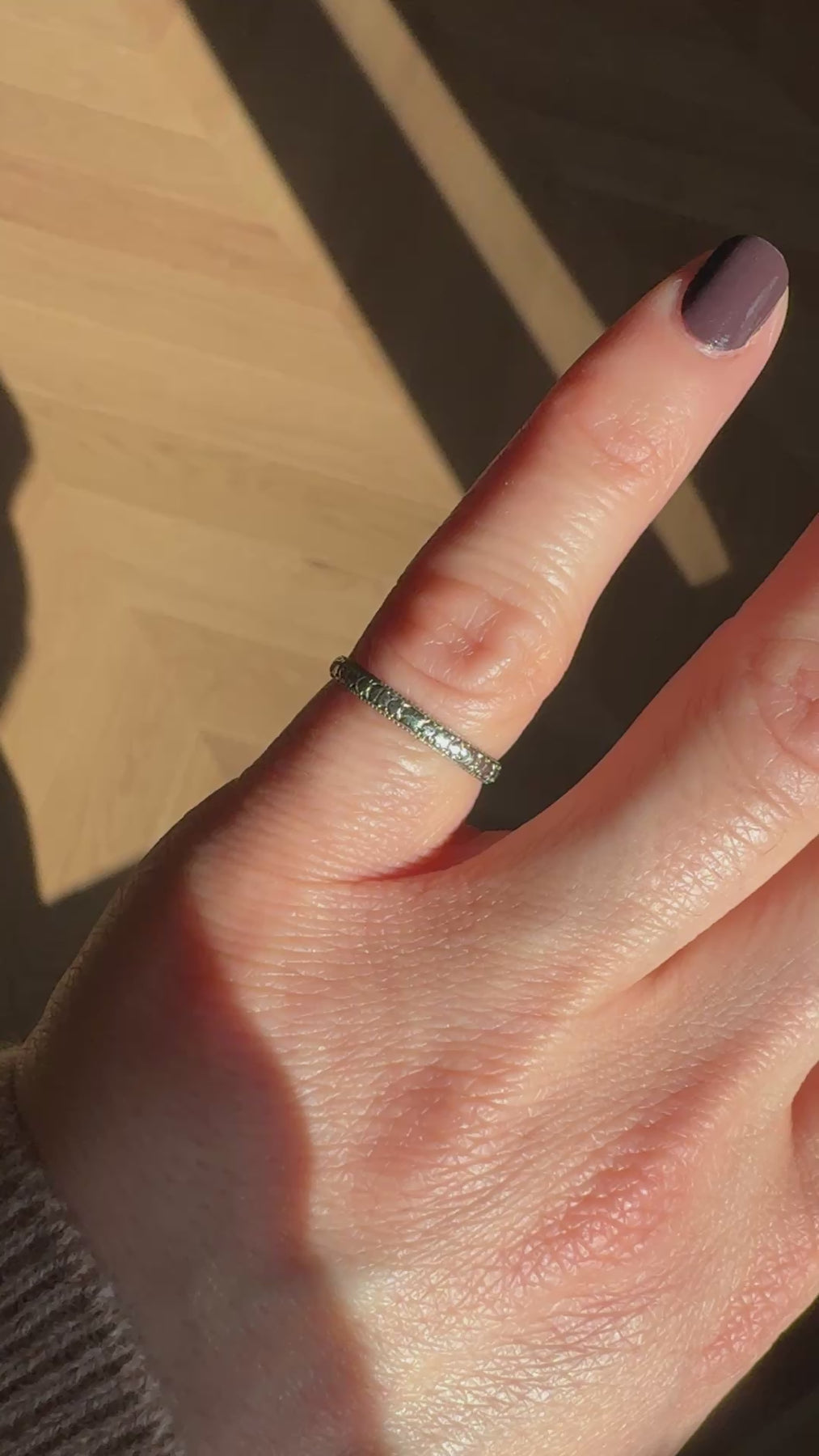Beautiful Antique Art Deco 18K White Gold Engraved Blossom Wedding Band Ring - Size 6 1/4. This incredible Art Deco engraved blossom wedding band ring is crafted in 18k white gold. This gorgeous ring features deep blossom engravings going around the entire ring. This beautiful ring is in great condition and sits low on the finger.