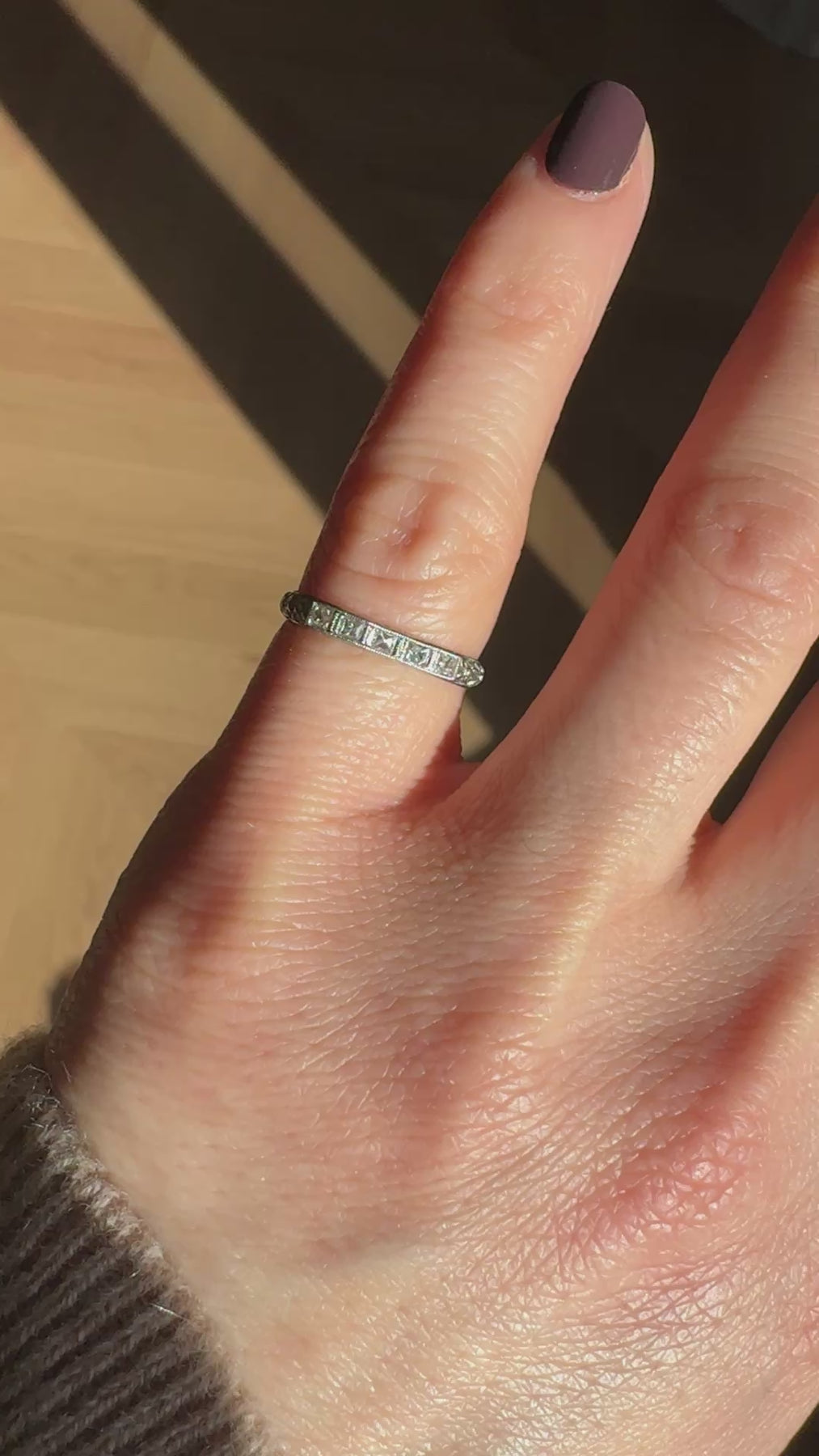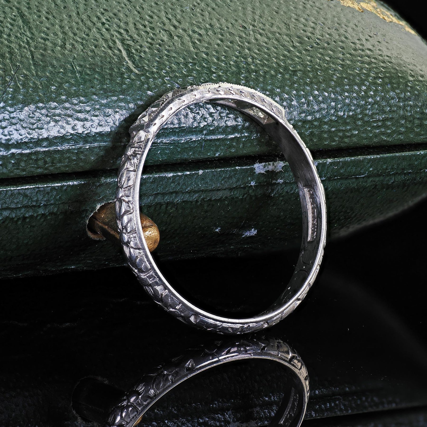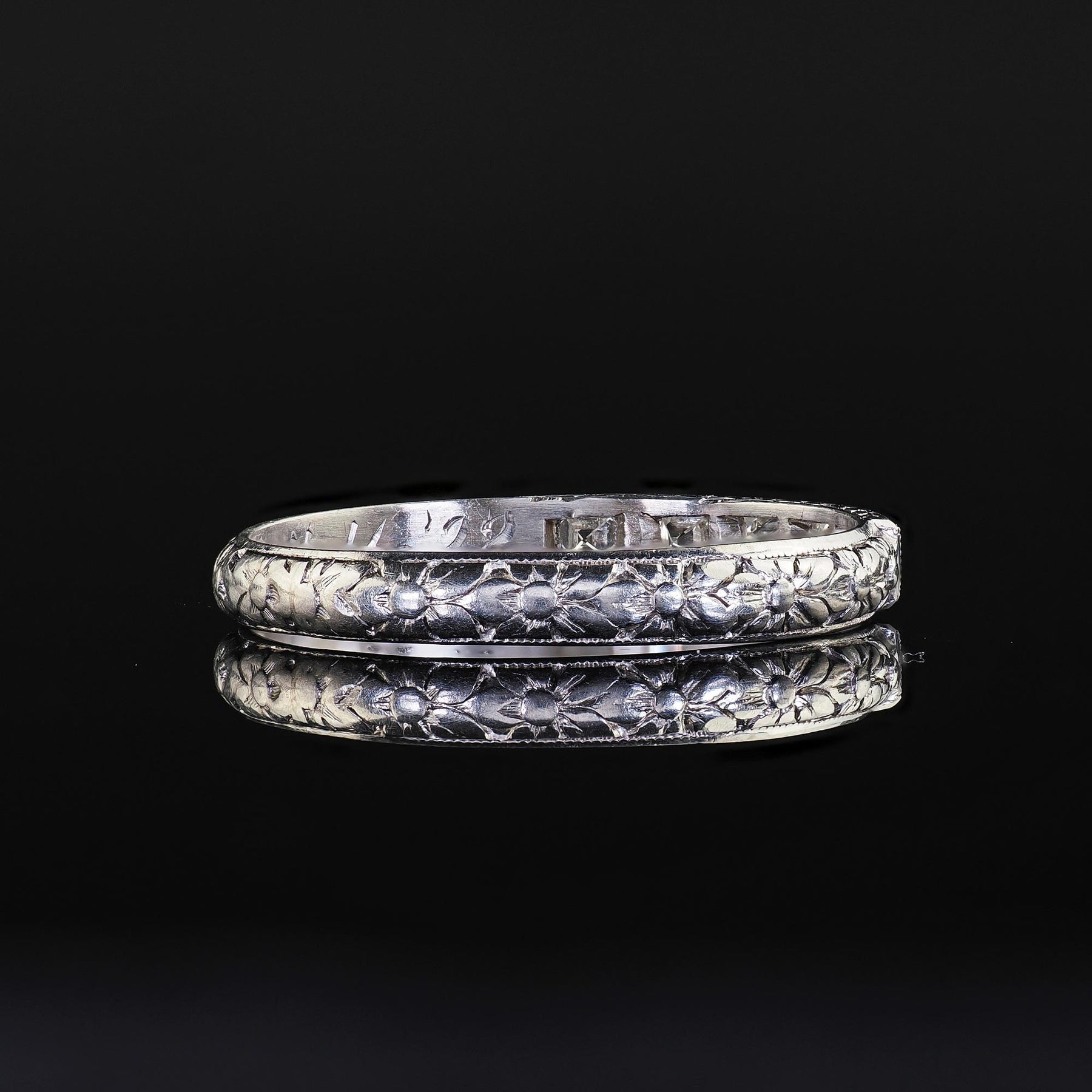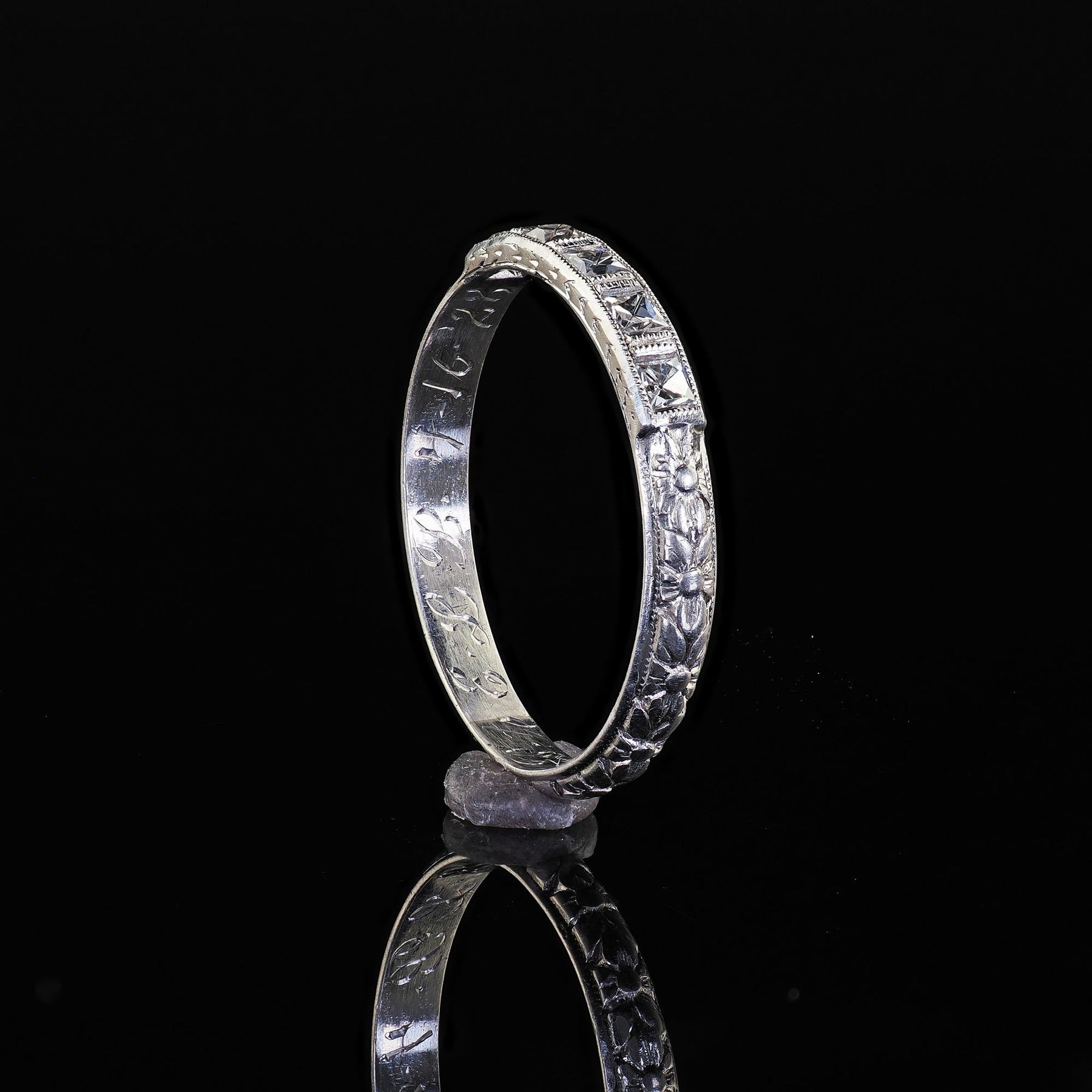 Antique Art Deco Platinum French Cut Diamond Engraved Wedding Band