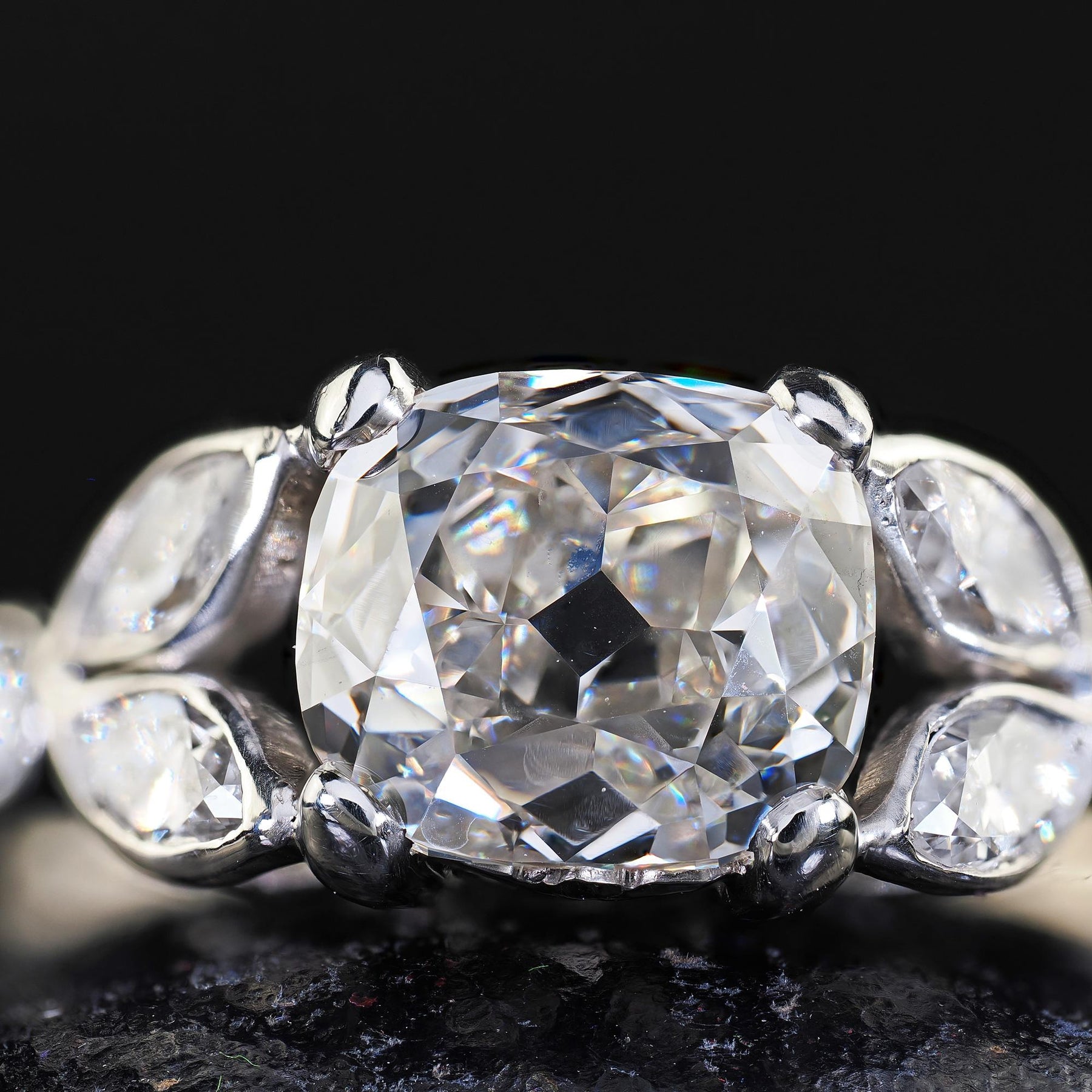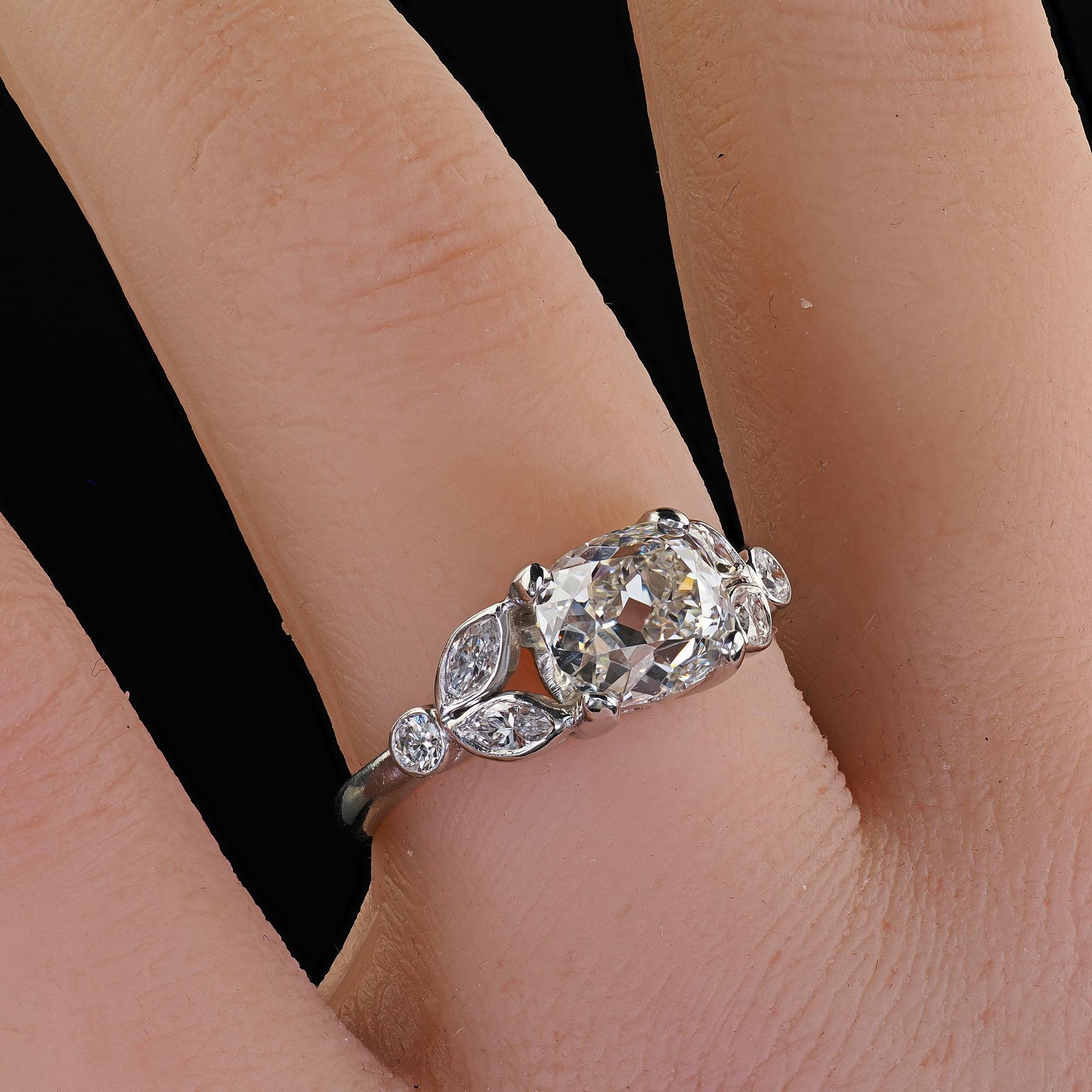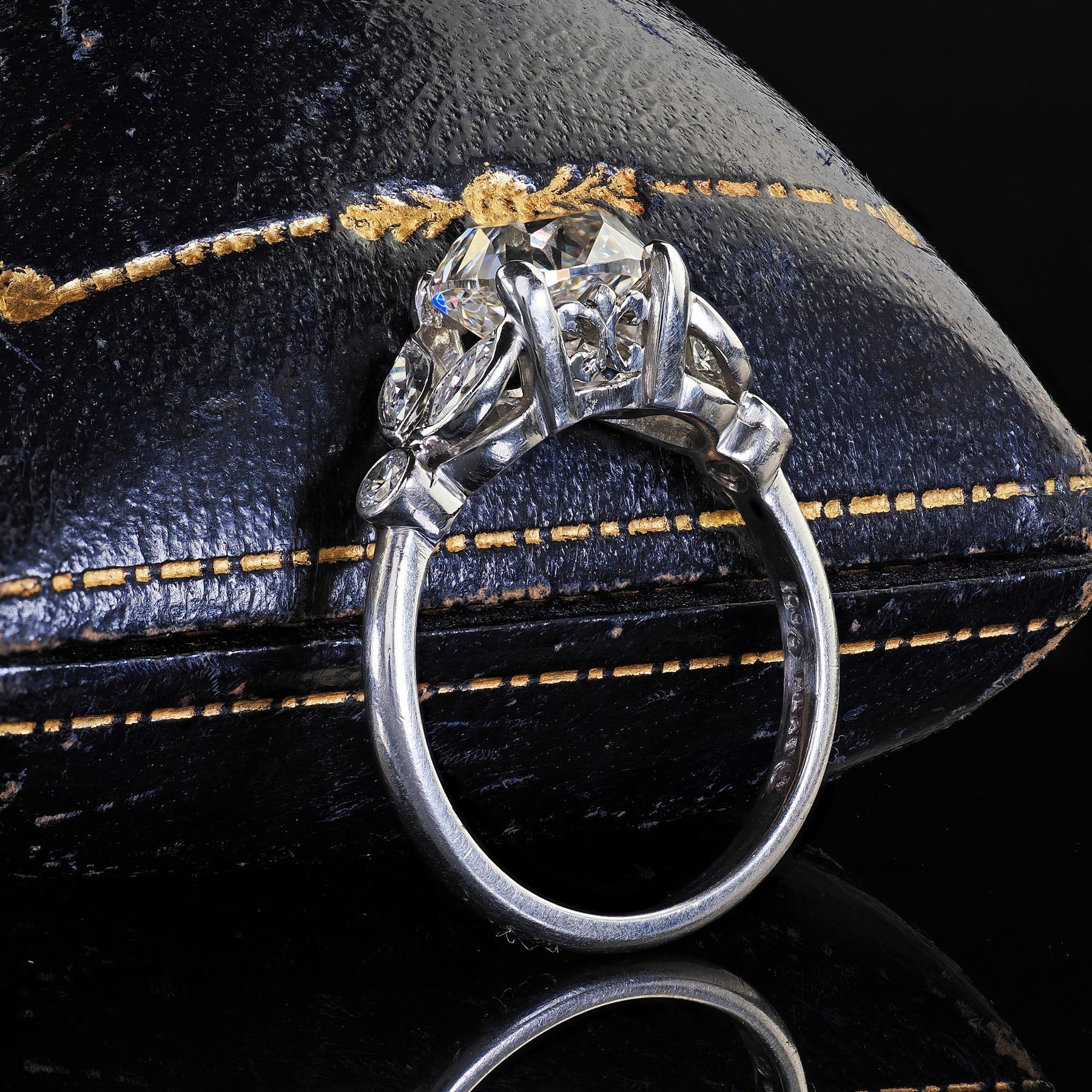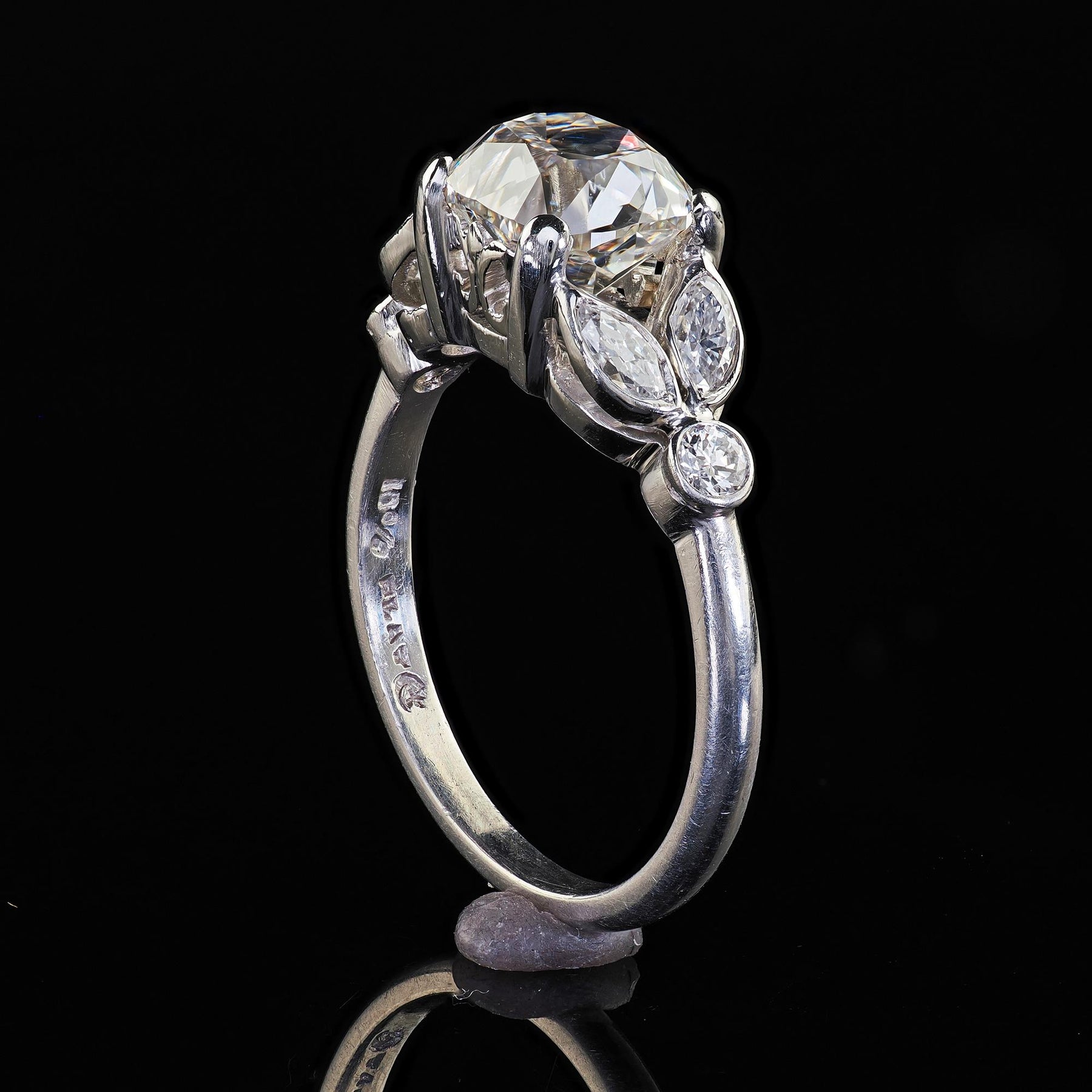 Beautiful Antique Art Deco Platinum Old Mine Cut Diamond Marquise Engagement Ring - GIA. This gorgeous antique old mine diamond and marquise engagement ring is crafted in platinum. This beautiful ring features an old mine cut diamond in the center that has a GIA report. This gorgeous diamond is set in a beautiful Art Deco mounting that has marquise set on the sides. The ring is in great condition and is gorgeous when worn.
