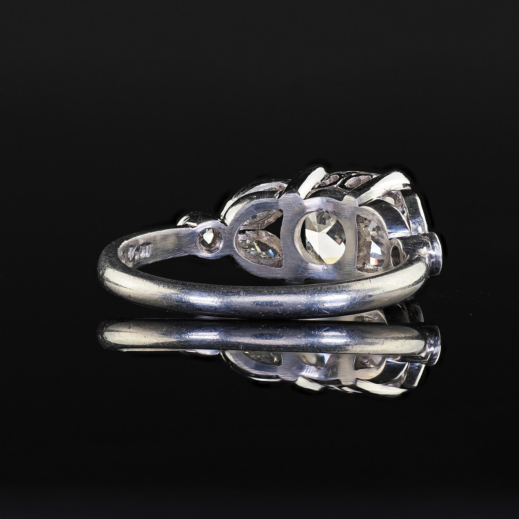 Antique Art Deco Platinum Old Mine Cut Diamond Marquise Engagement Ring - GIA