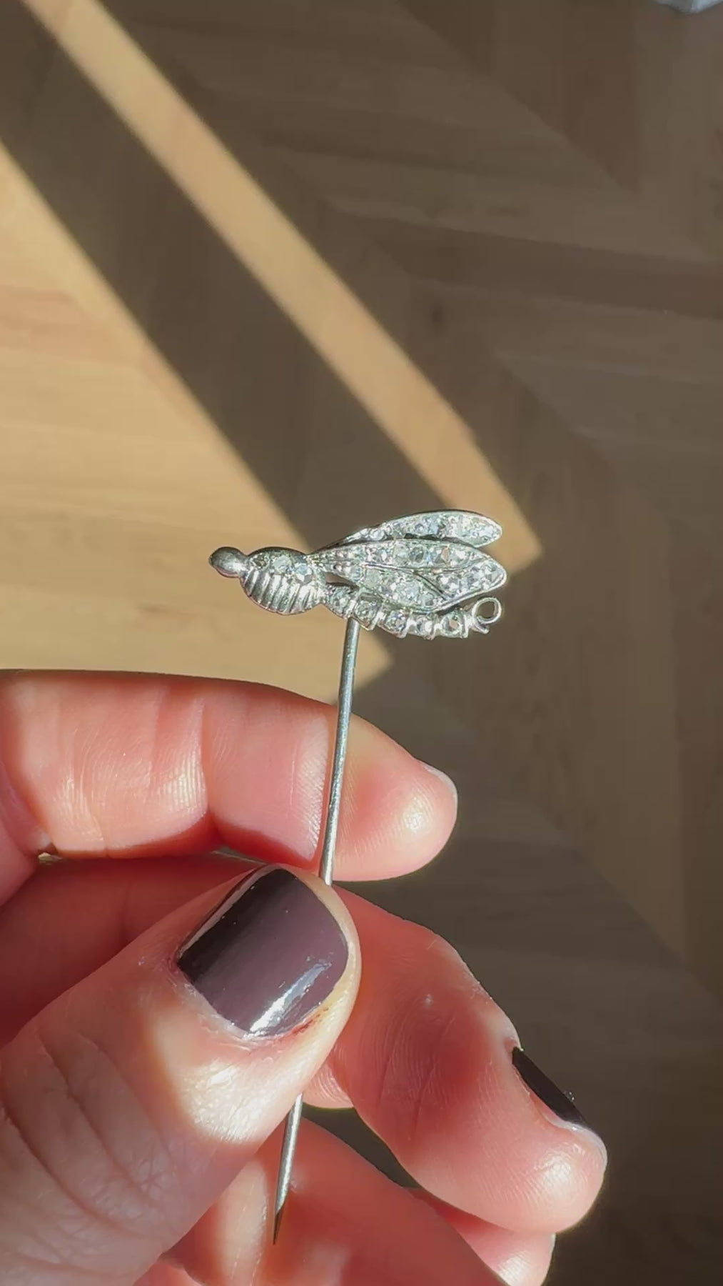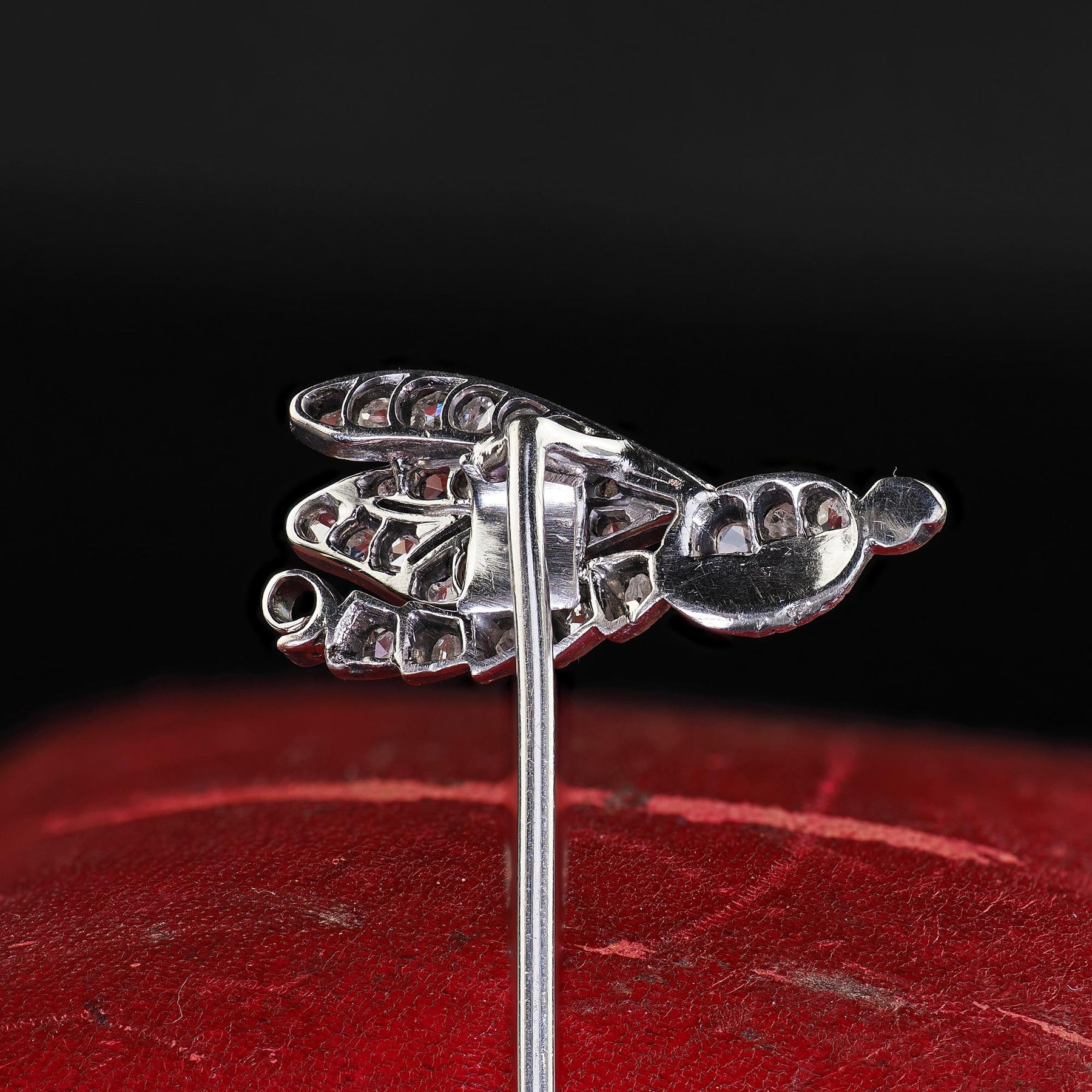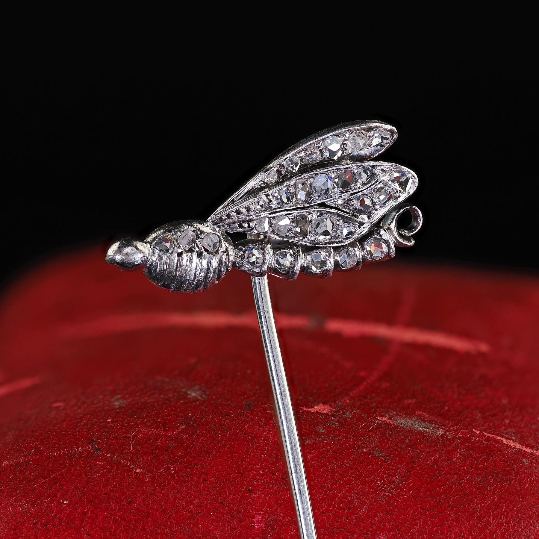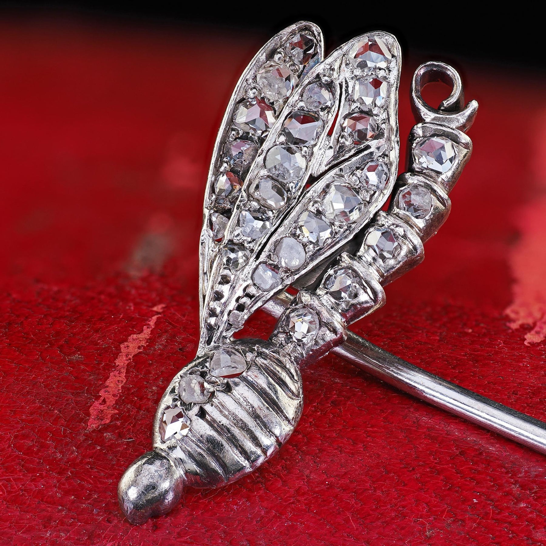 Antique Edwardian 18K White Gold Platinum Rose Cut Diamond Dragon Fly Stick Pin