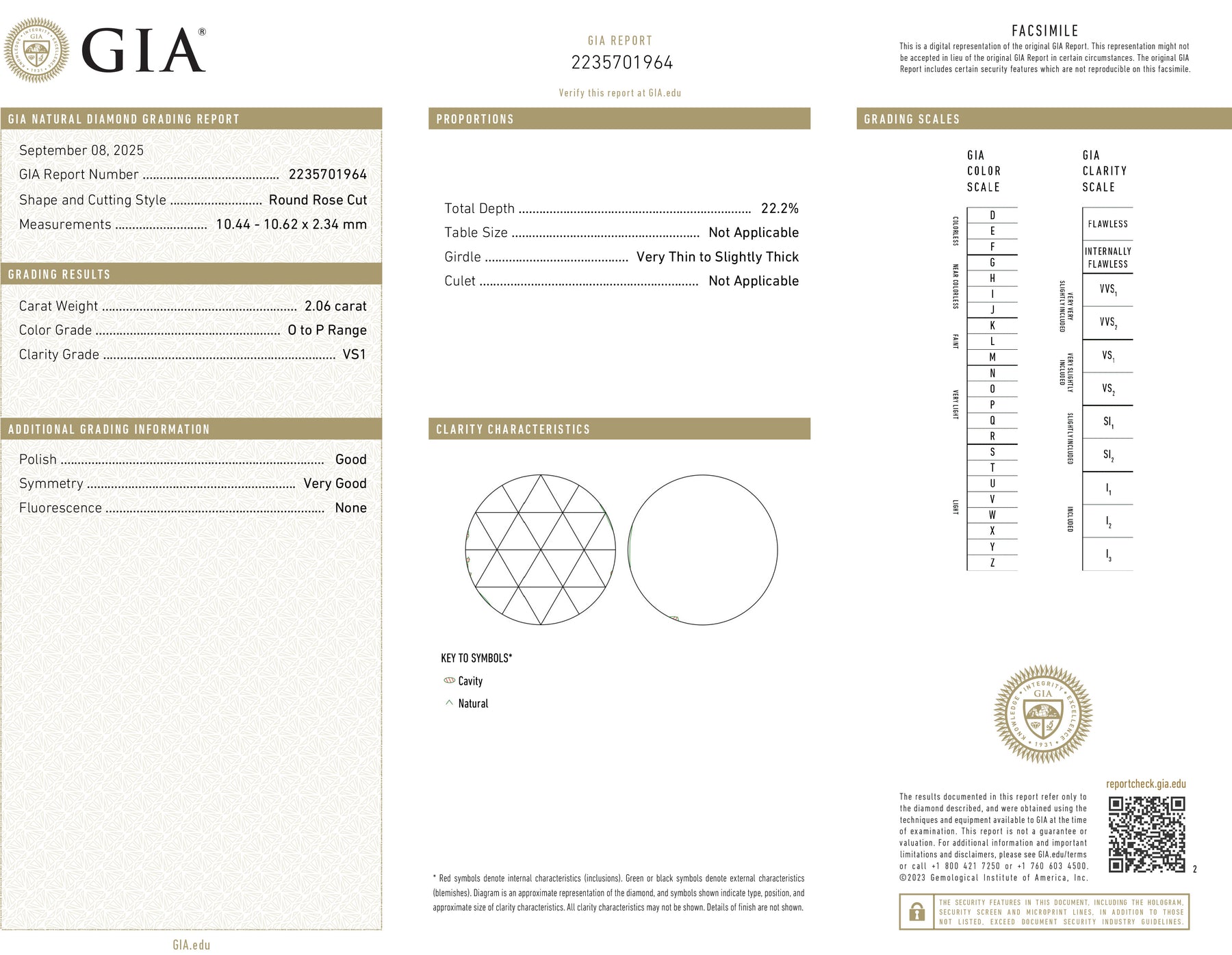Center Diamond: 2.06 ct - GIA # 2235701964