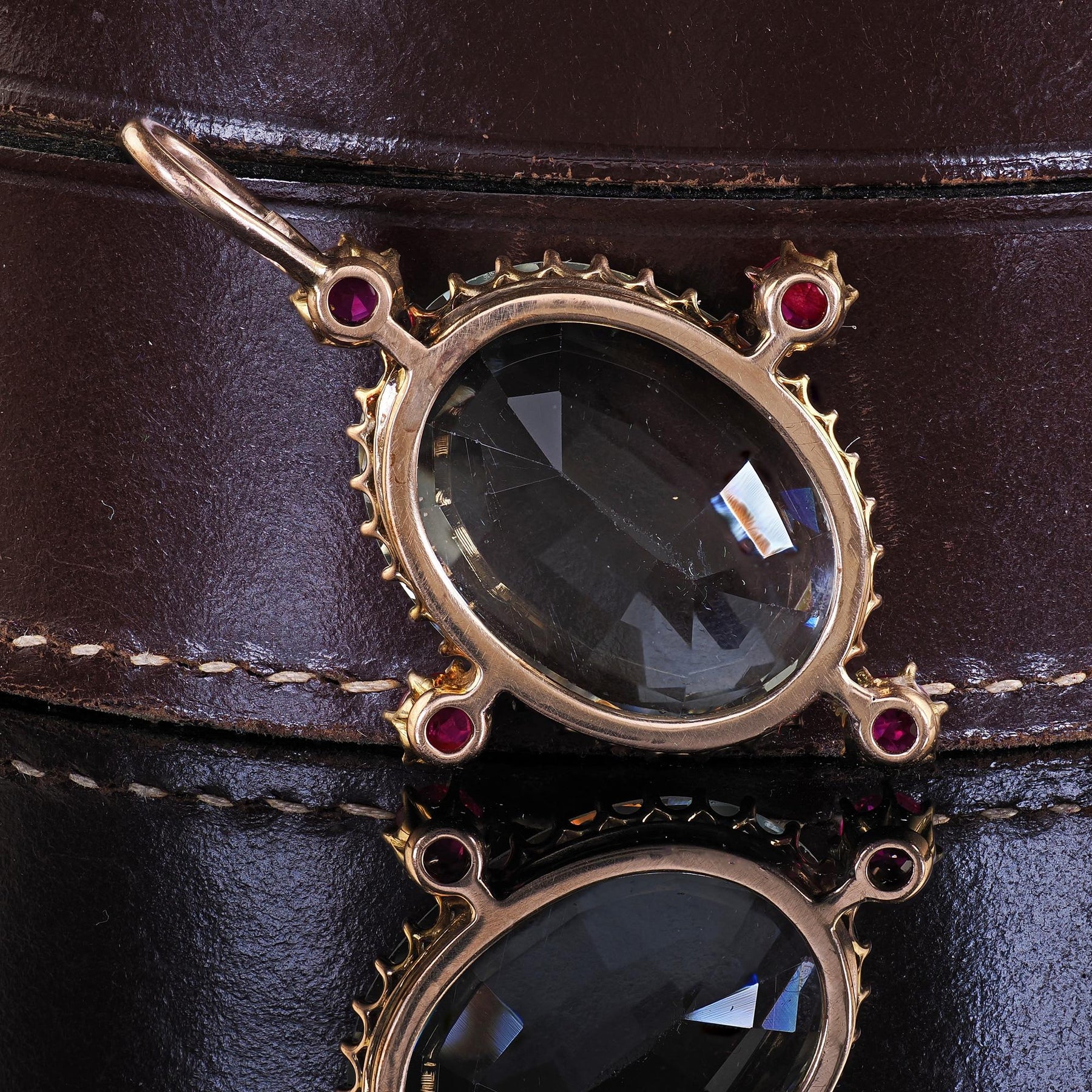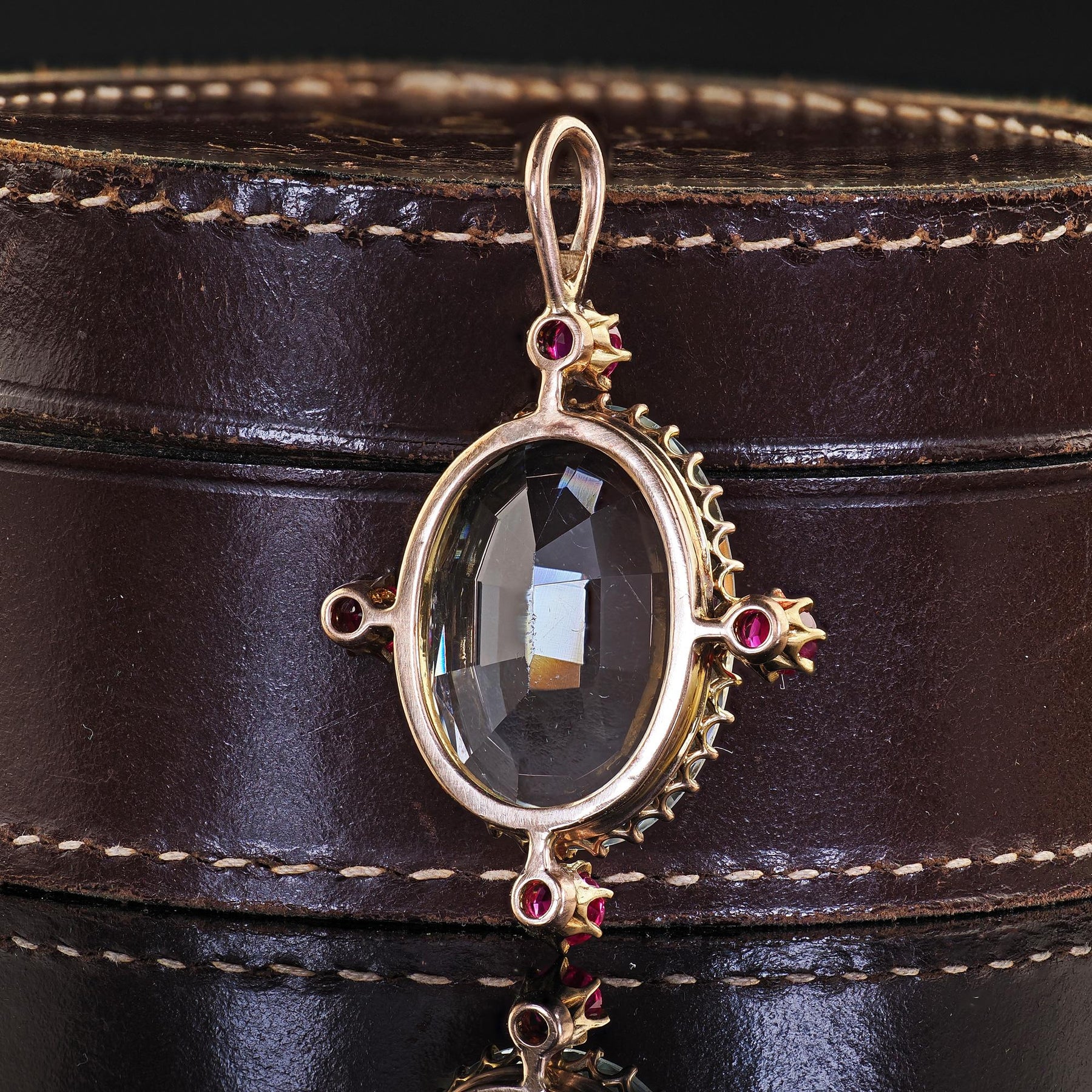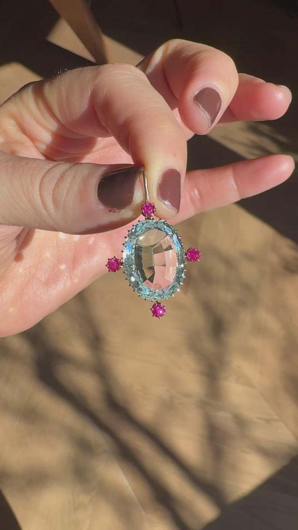 Antique Victorian 14K Yellow Gold Aquamarine and Burma Ruby Drop Pendant