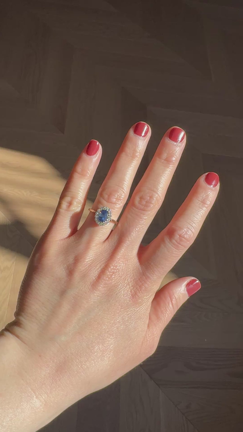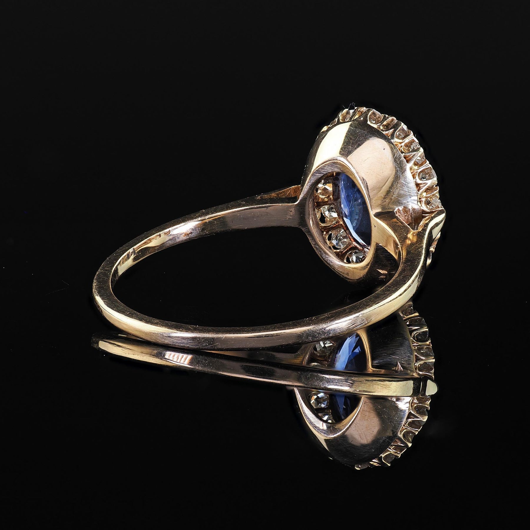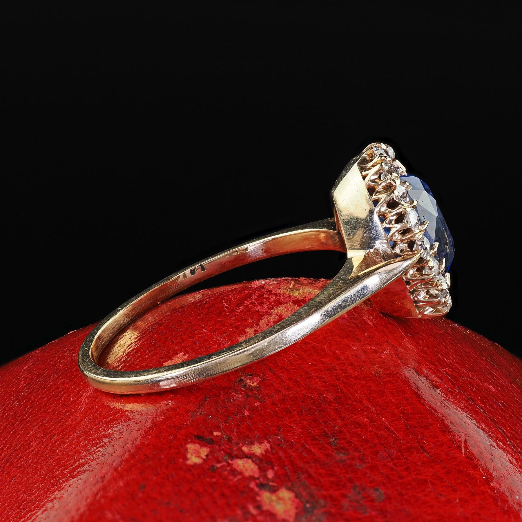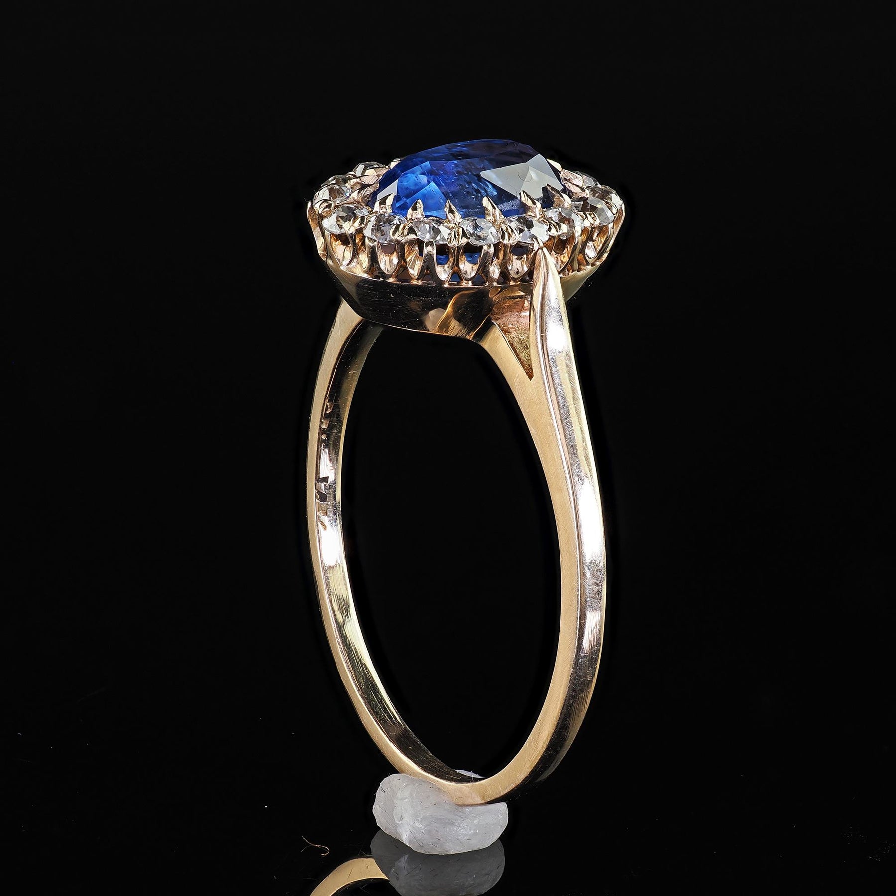 Beautiful Antique Victorian 14K Yellow Gold Ceylon Sapphire Diamond Engagement Ring - GIA. This beautiful Victorian Ceylon no heat diamond cluster engagement ring is crafted in 14k yellow gold. This beautiful ring features a bright cornflower blue sapphire in the center and has a GIA report. The sapphire is surrounded by old cut diamonds and is set in a beautiful Victorian mounting.