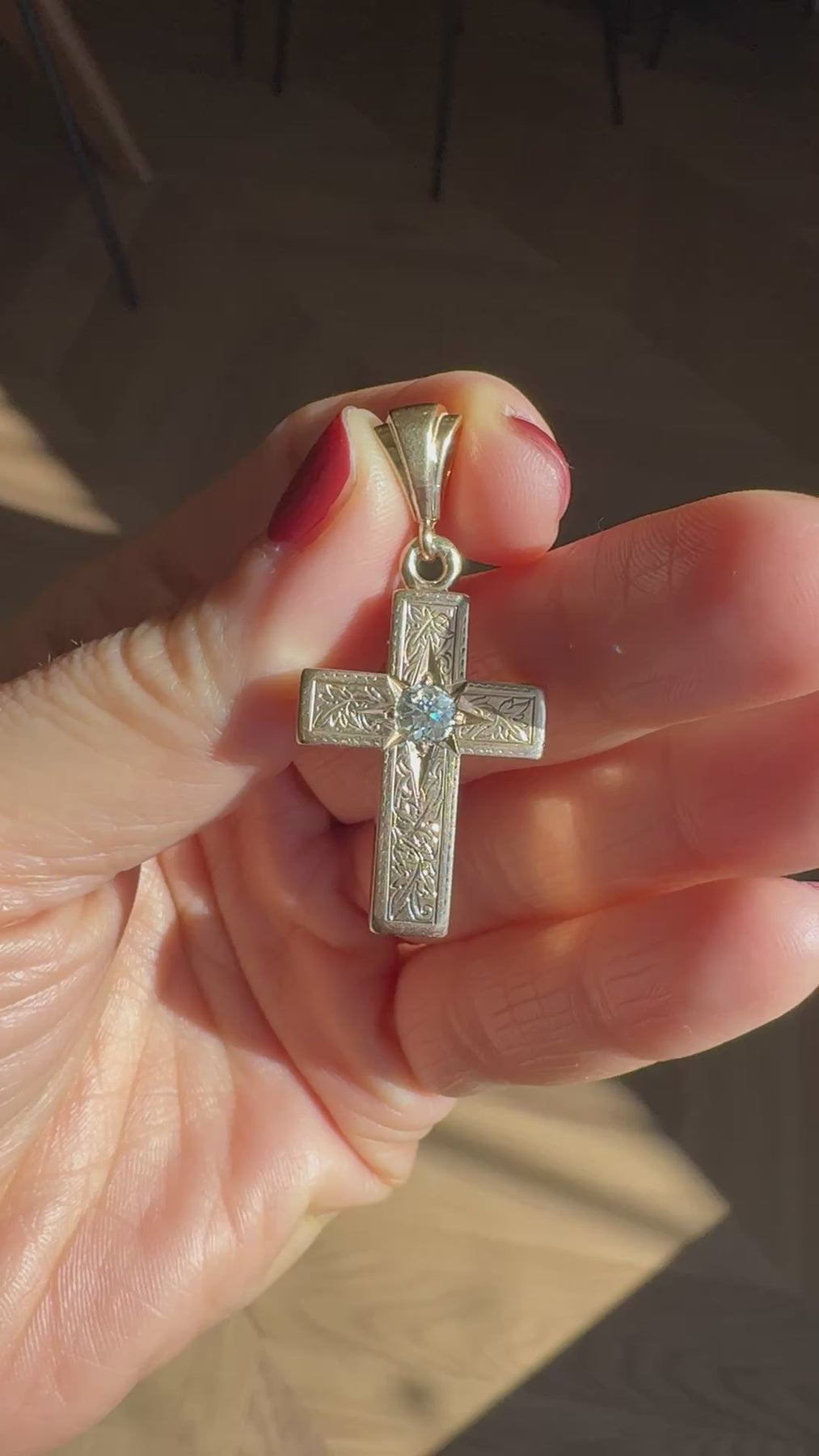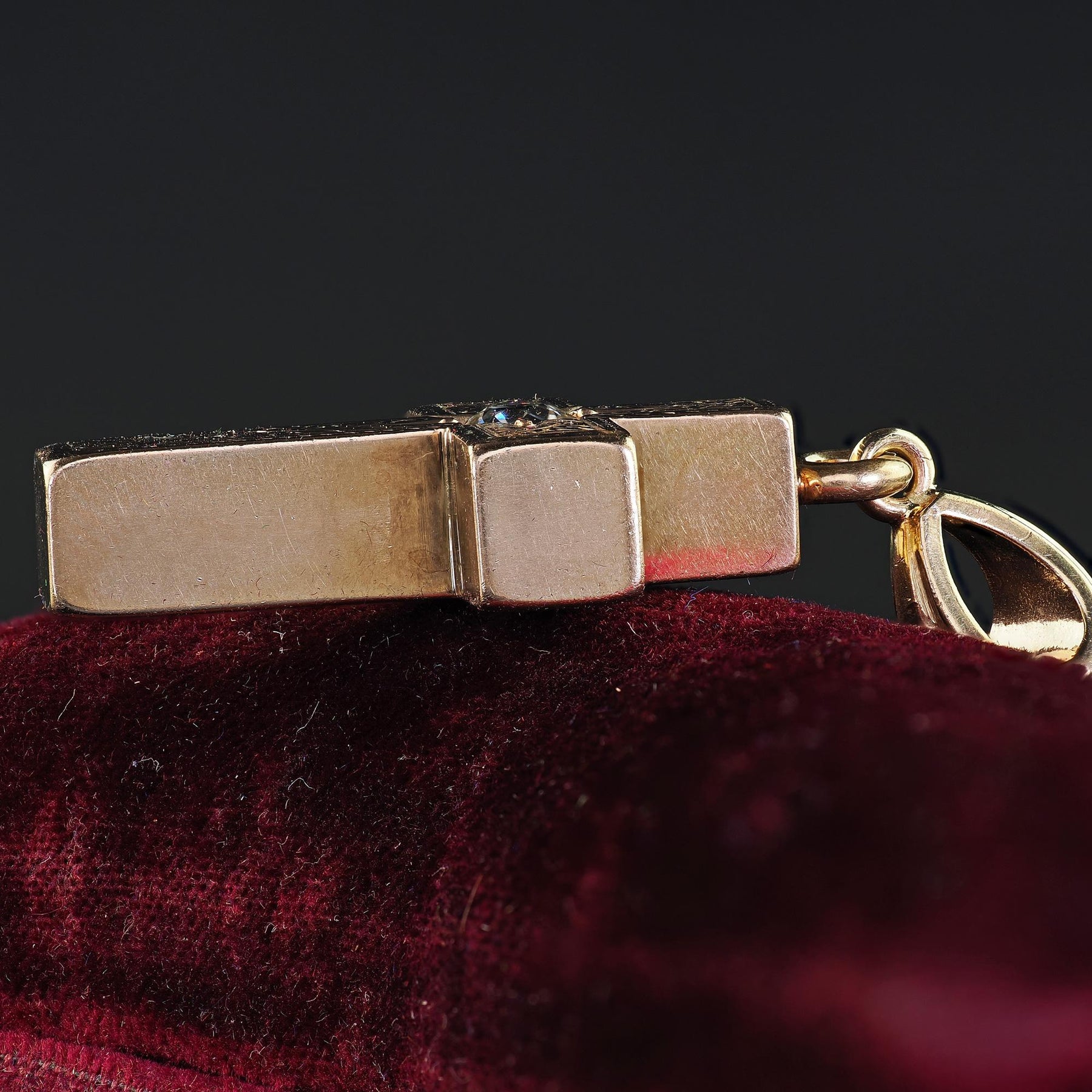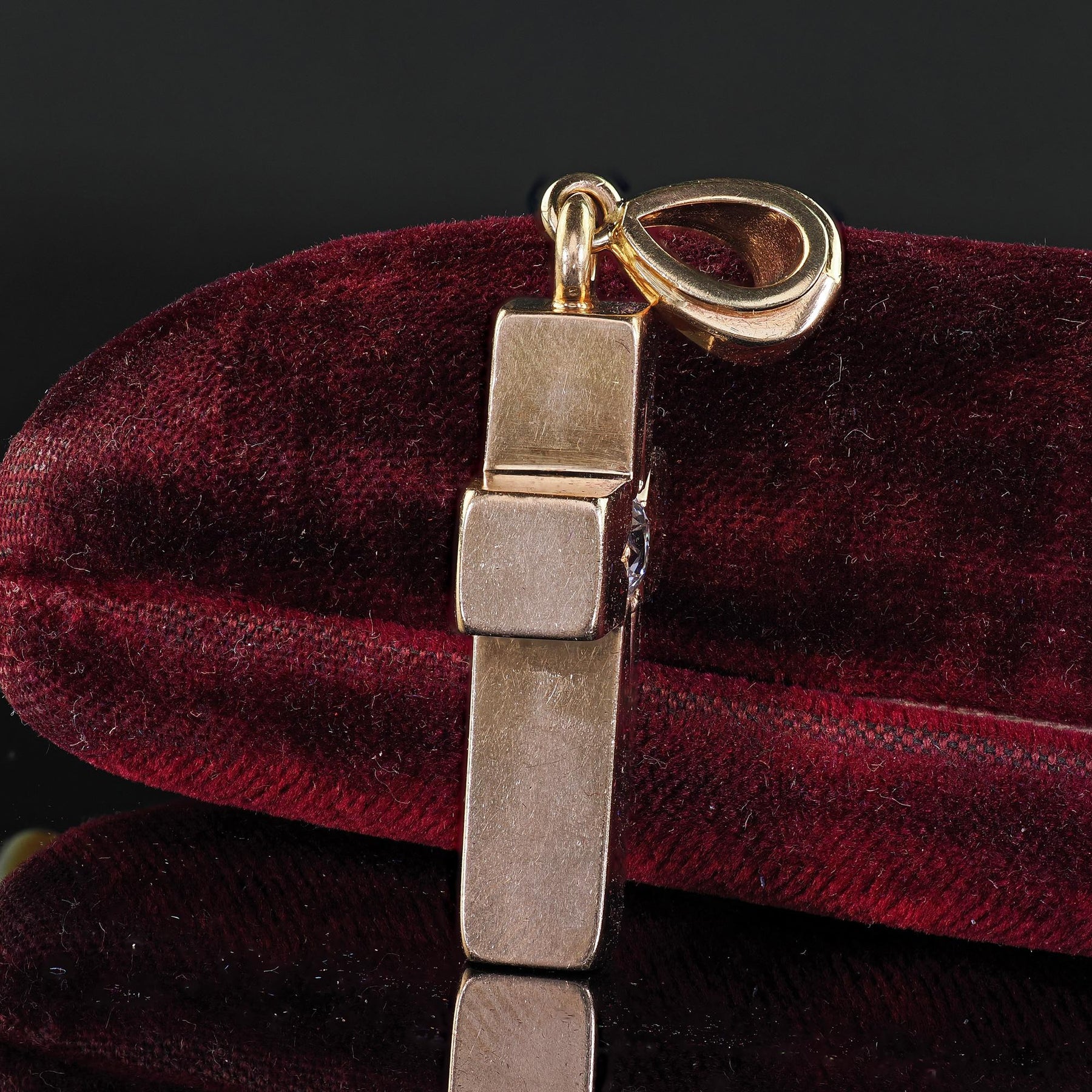 Antique Victorian 14K Yellow Gold Old Euro Diamond Double Sided Cross Pendant