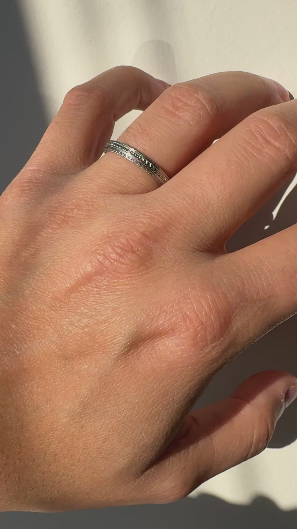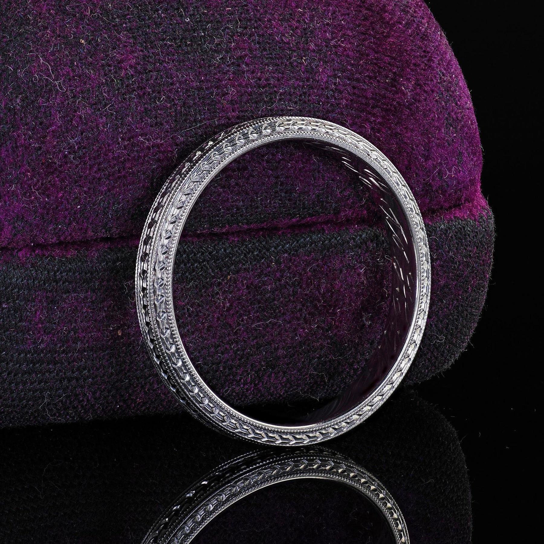 Vintage Art Deco Woods Sons 18K White Gold Engraved Wheat Pattern Wedding Band