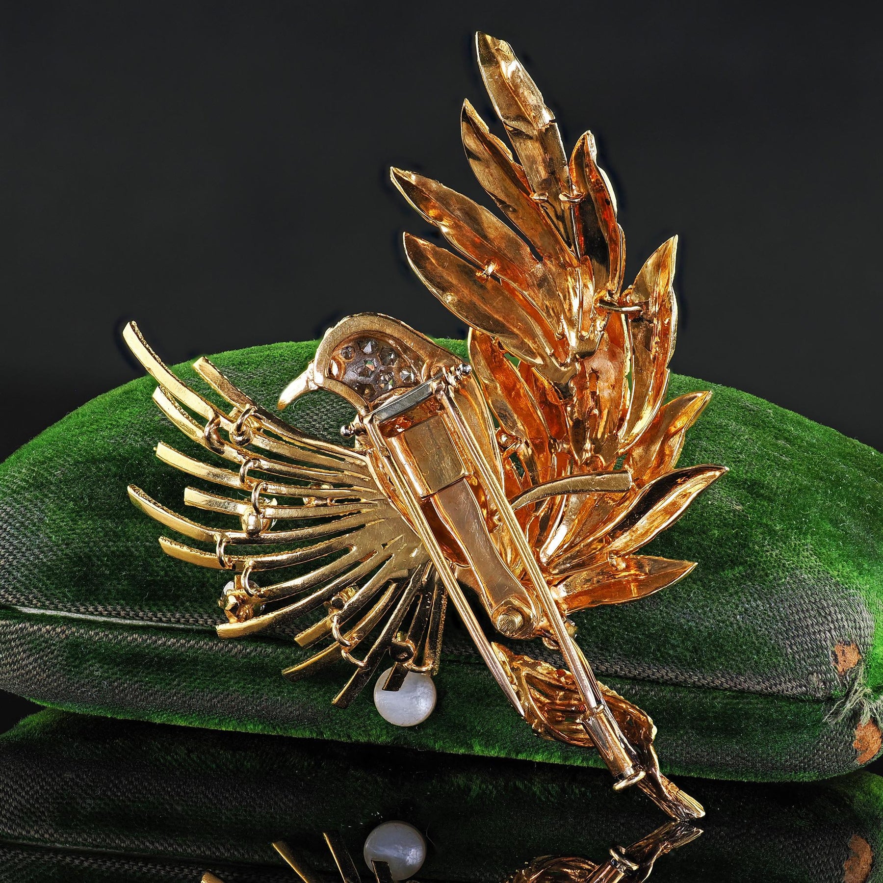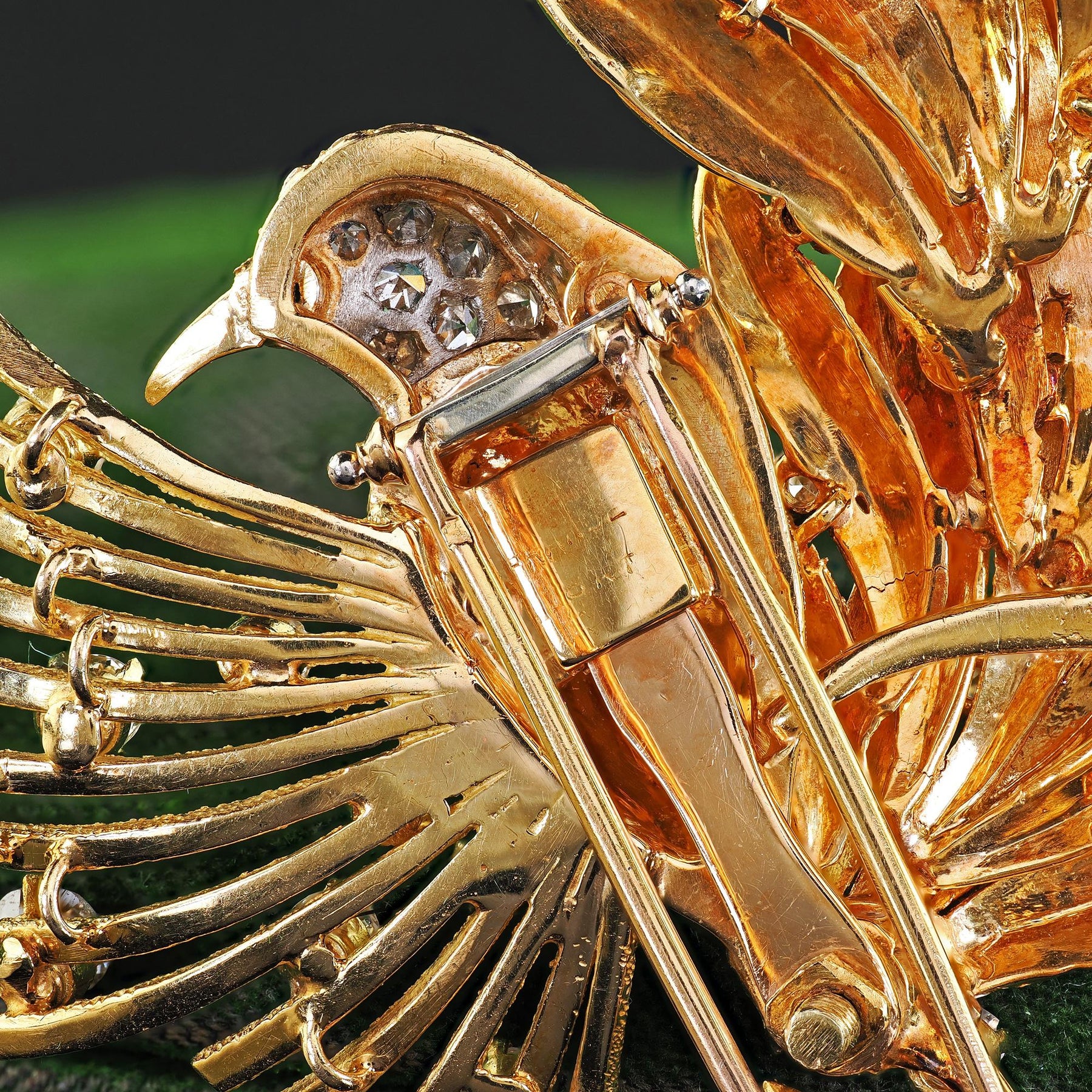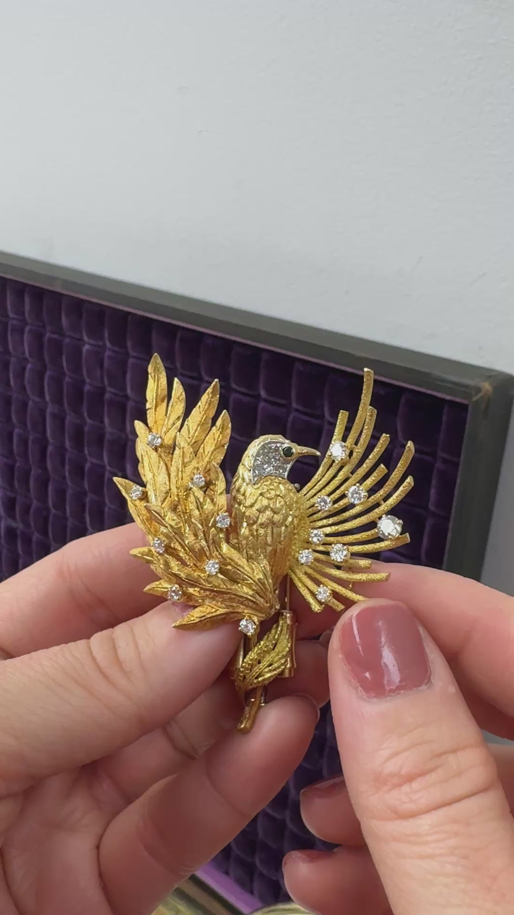 Vintage Estate French 18K Yellow Gold Old Cut Diamond Bird of Paradise Pin
