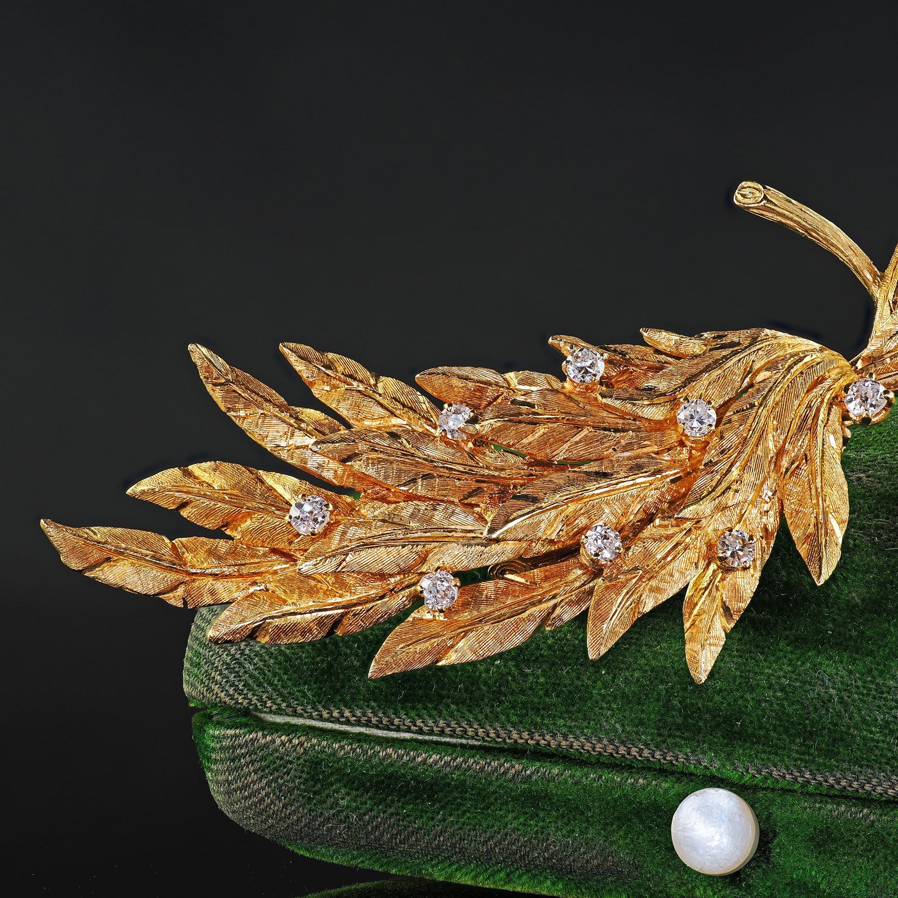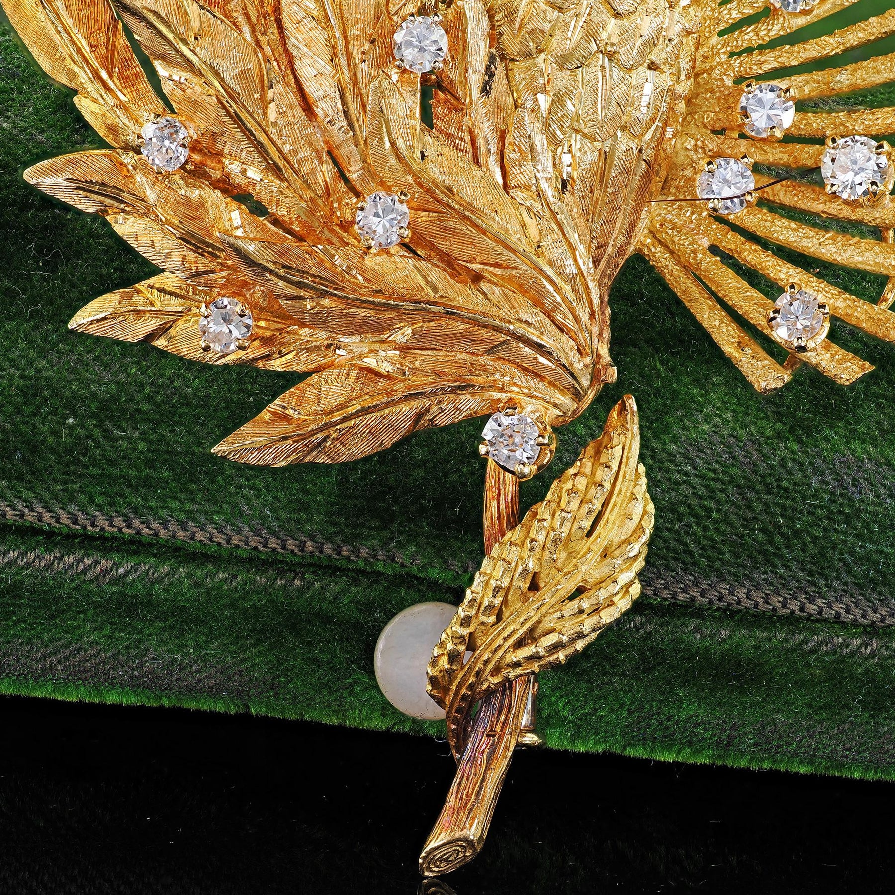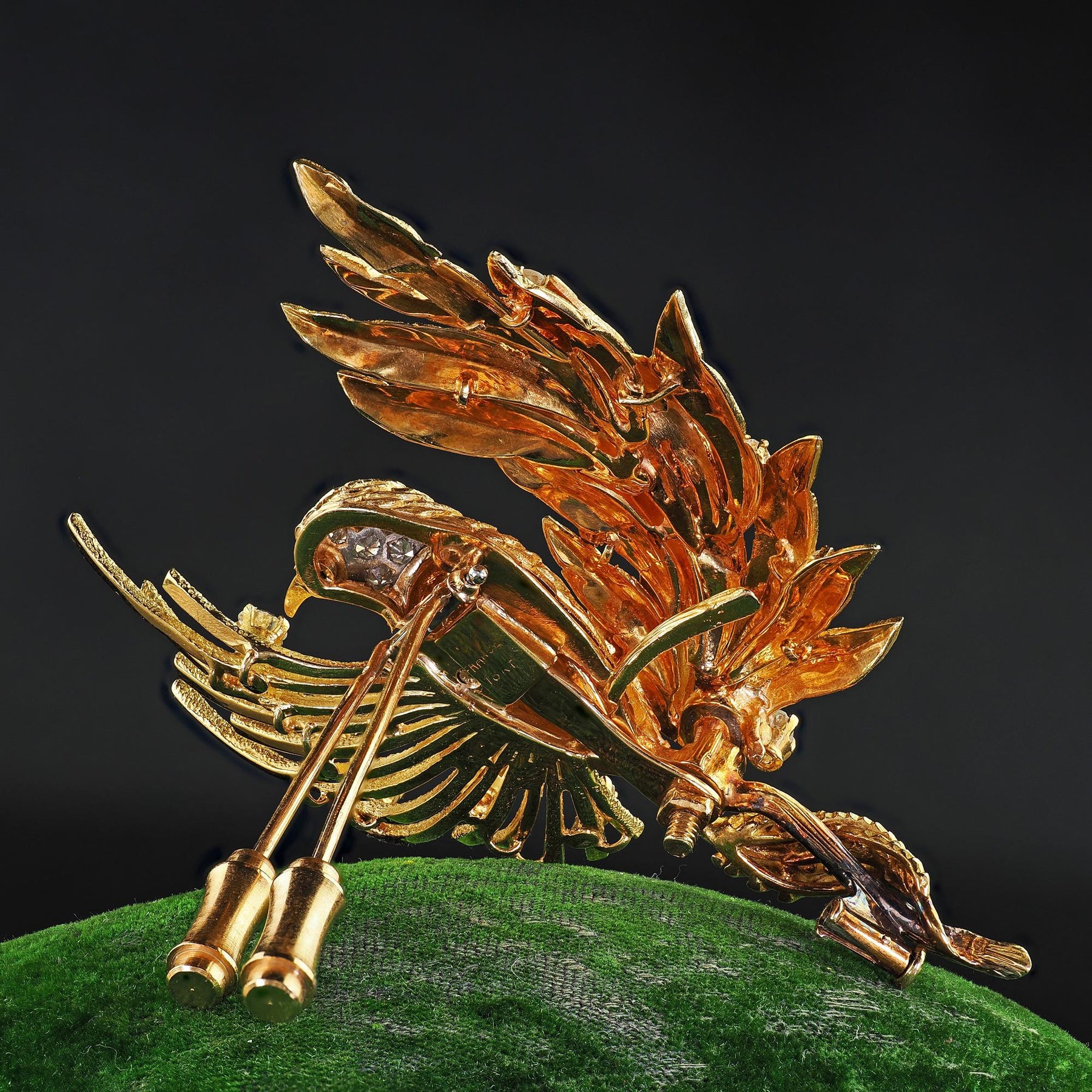 Vintage Estate French 18K Yellow Gold Old Cut Diamond Bird of Paradise Pin