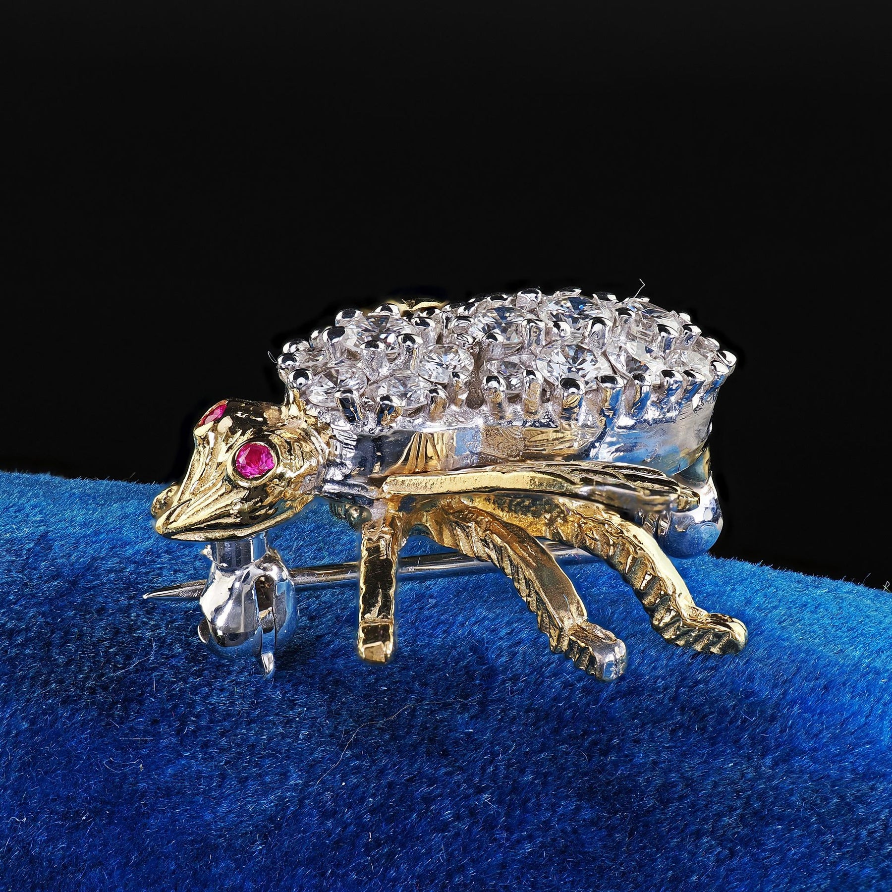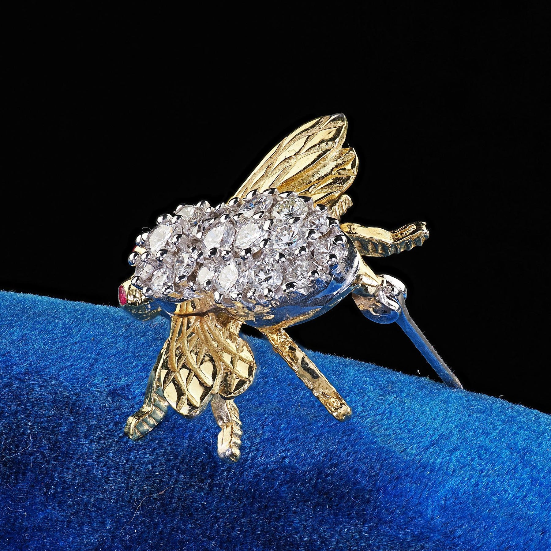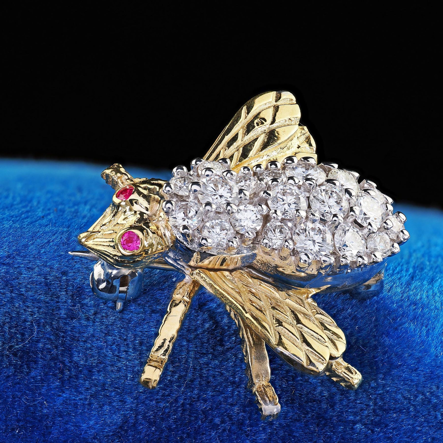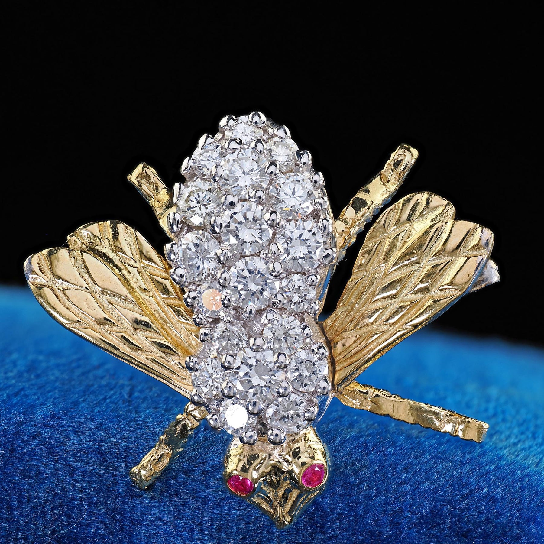 Beautiful Vintage Herbert Rosenthal 18K Yellow Gold Diamond and Ruby Bee Pin Brooch. This beautiful Herbert Rosenthal diamond bee pin brooch is crafted in 18k yellow gold and white gold top. This beautiful bee pin features diamonds covering the entire body of the bee with red rubies as the eyes. This pin is in great condition and is beautiful when worn.