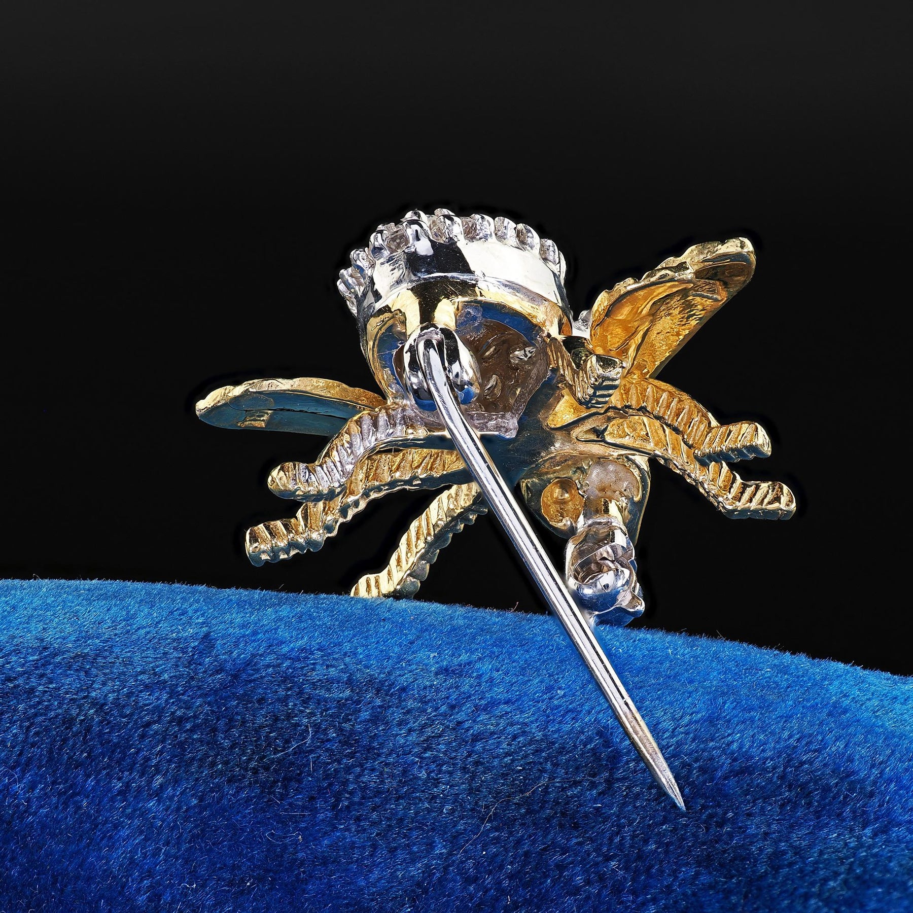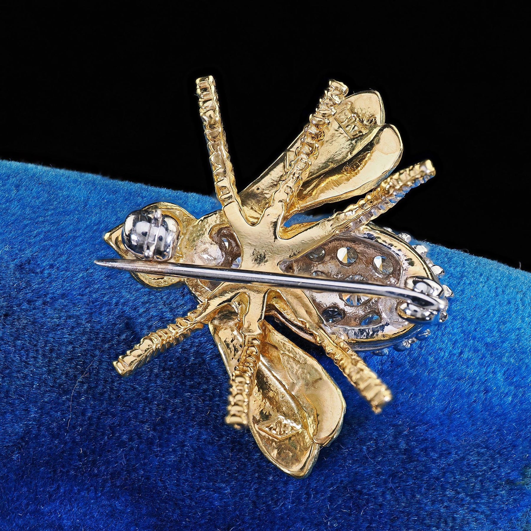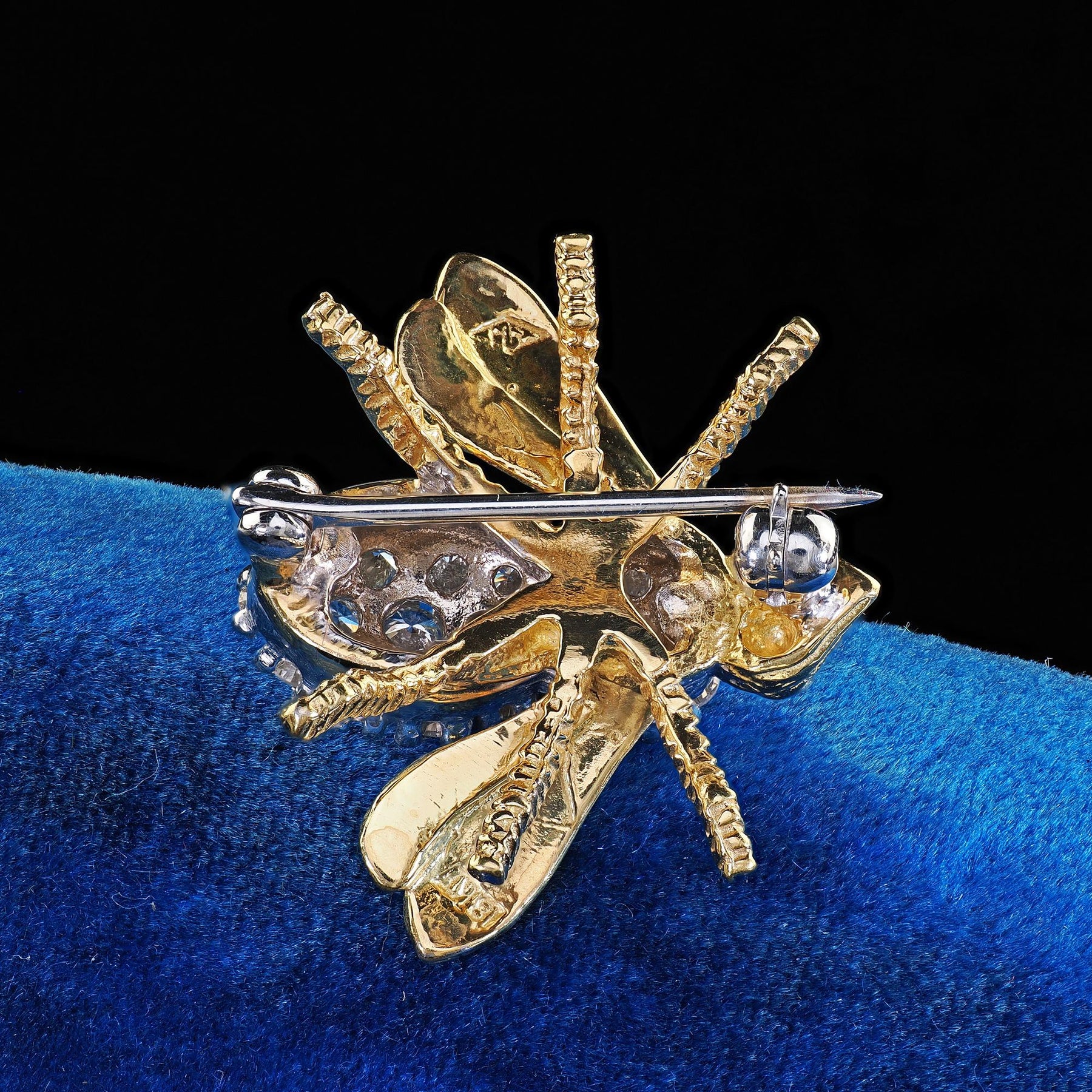 Vintage Herbert Rosenthal 18K Yellow Gold Diamond and Ruby Bee Pin Brooch
