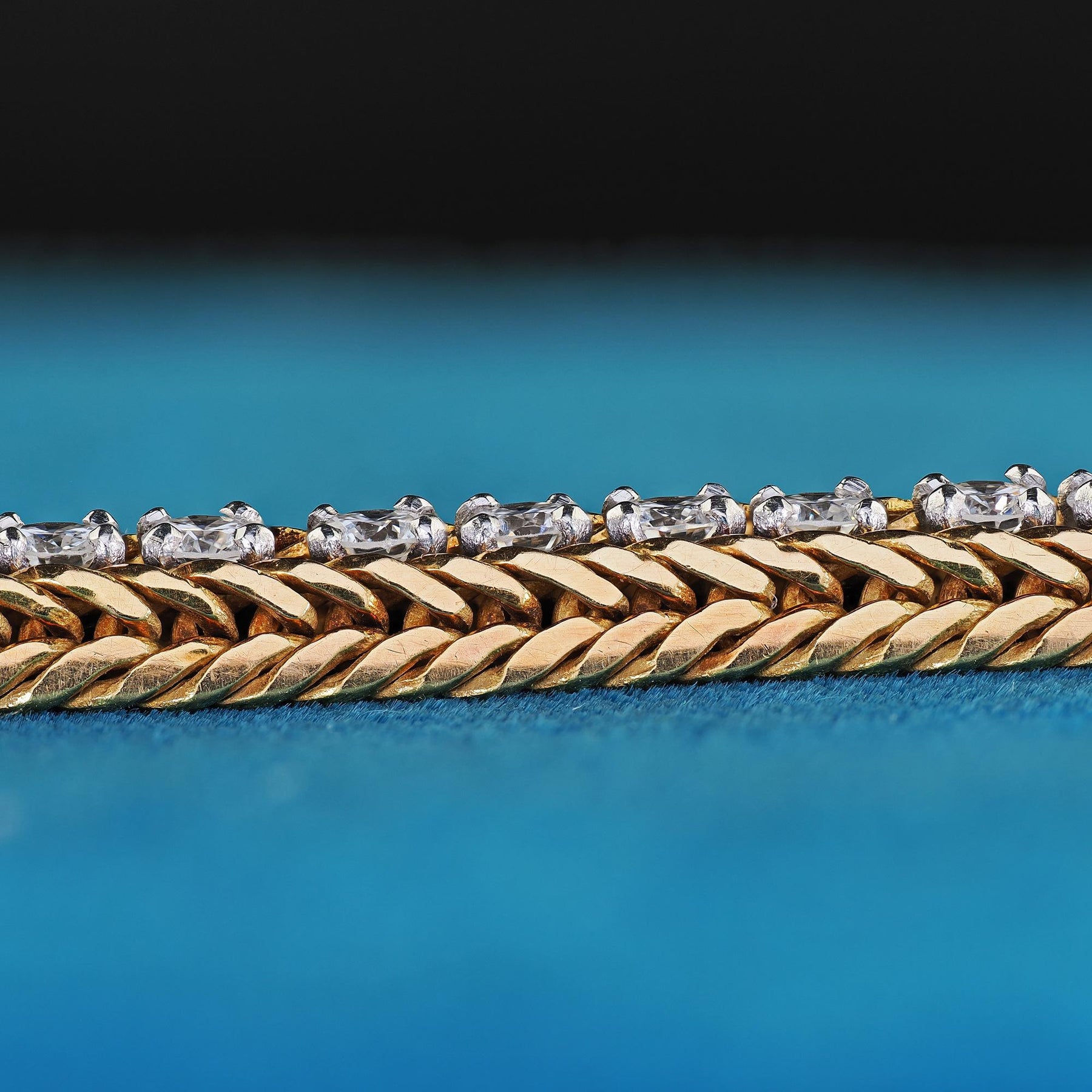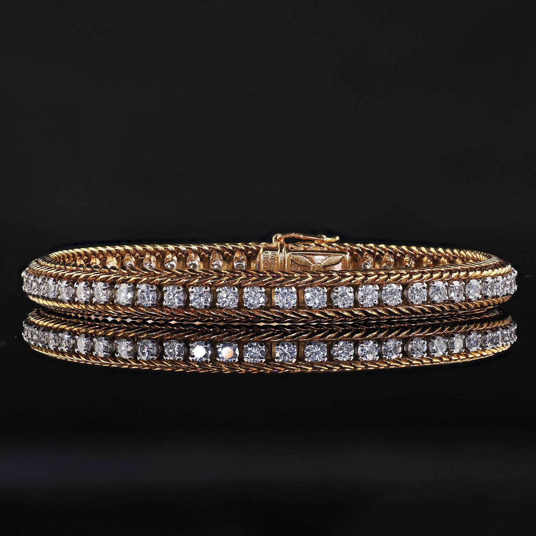 Vintage Oscar Heyman 18K Gold and Platinum Diamond Gold Weave Tennis Bracelet