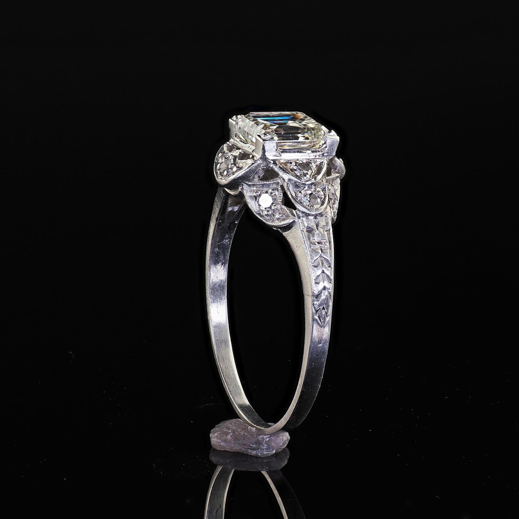 Antique Art Deco Platinum Old Emerald Cut Diamond Engagement Ring - GIA