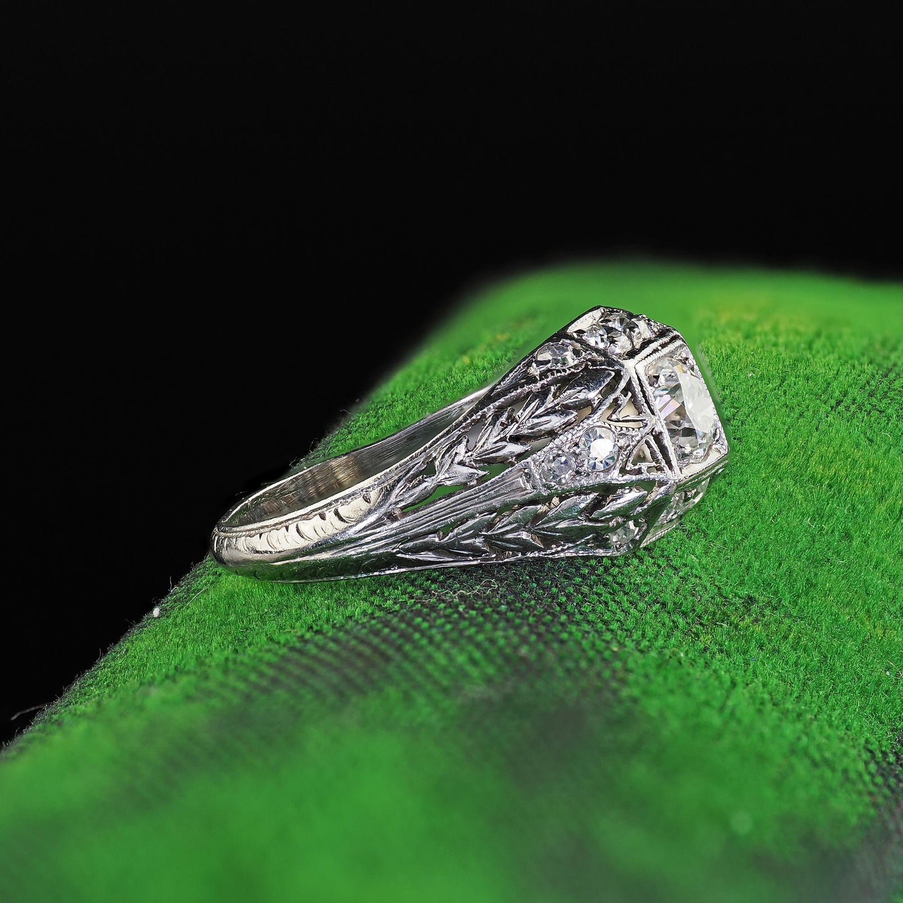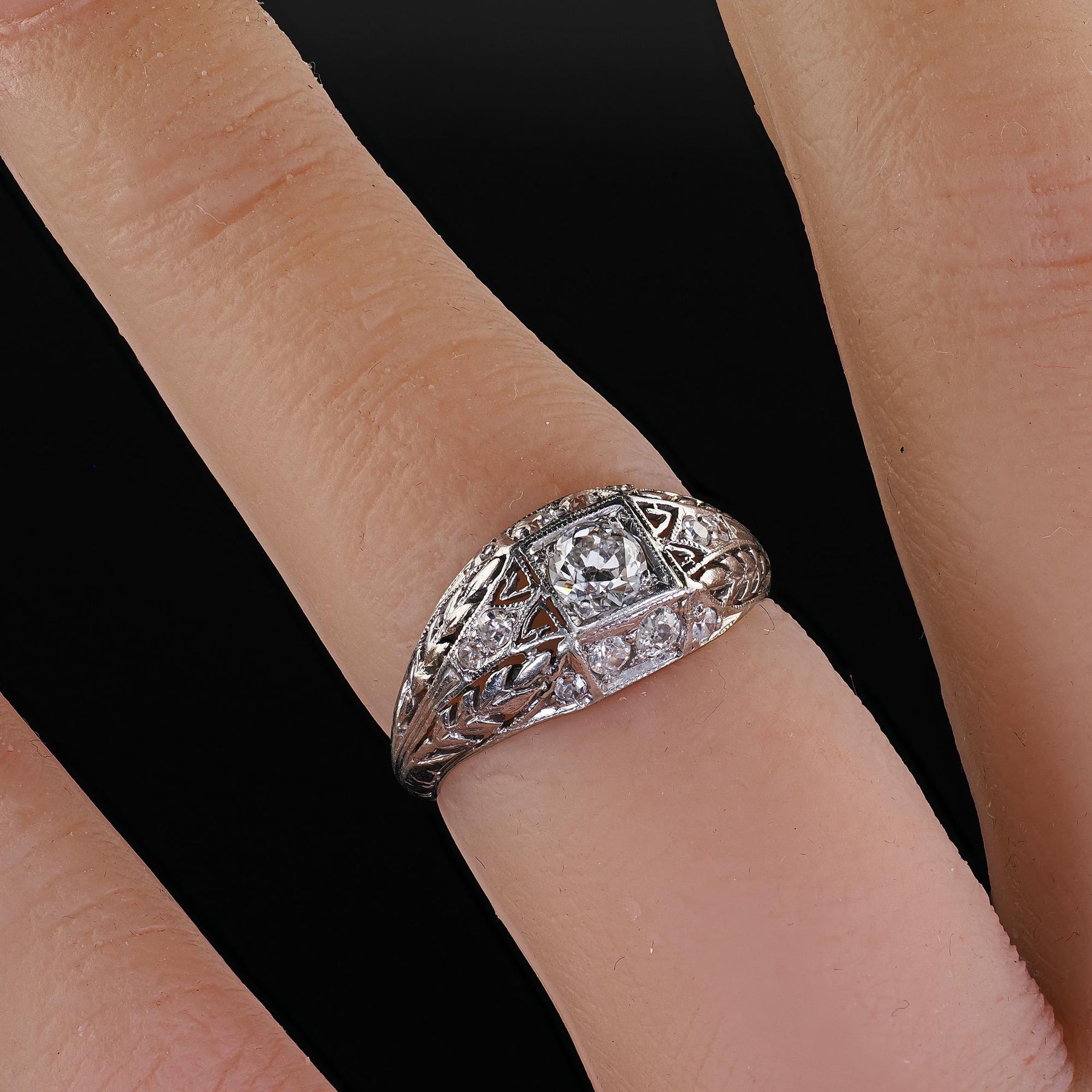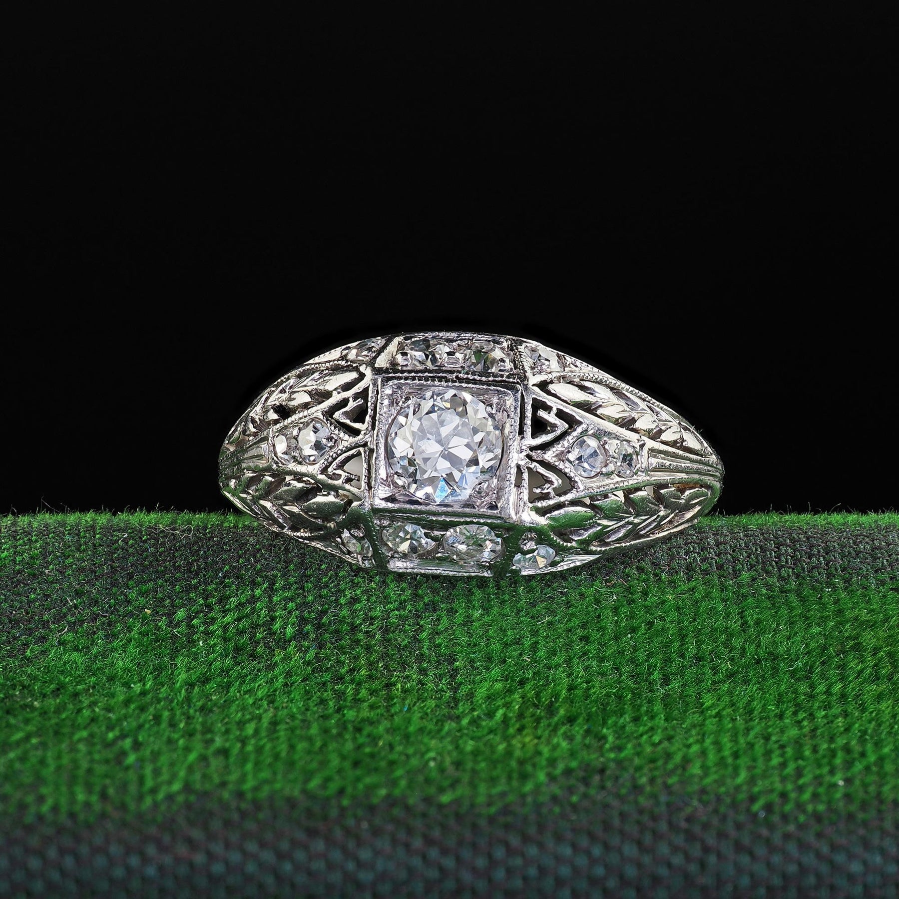 Antique Art Deco Platinum Old European Cut Diamond Filigree Engagement Ring