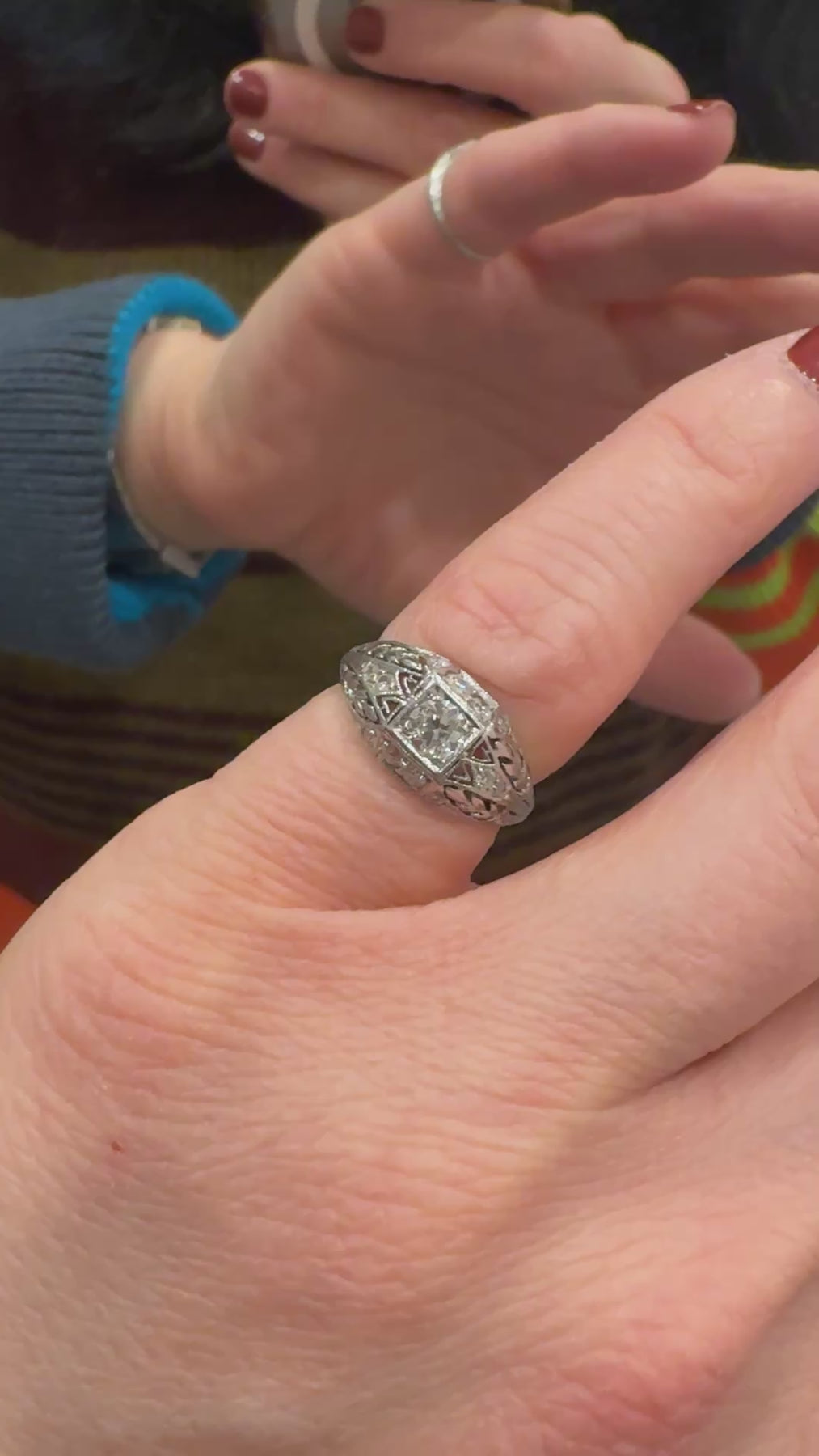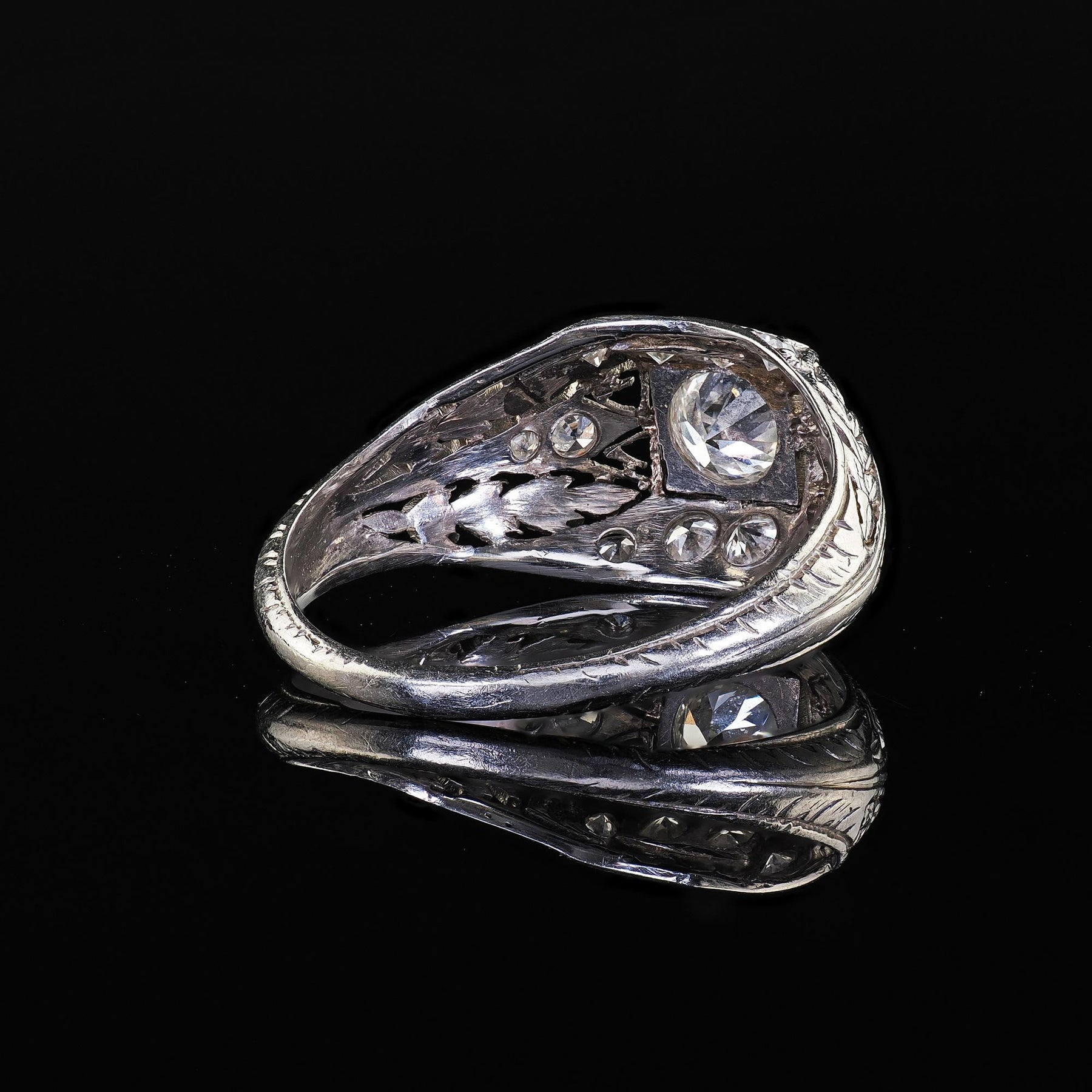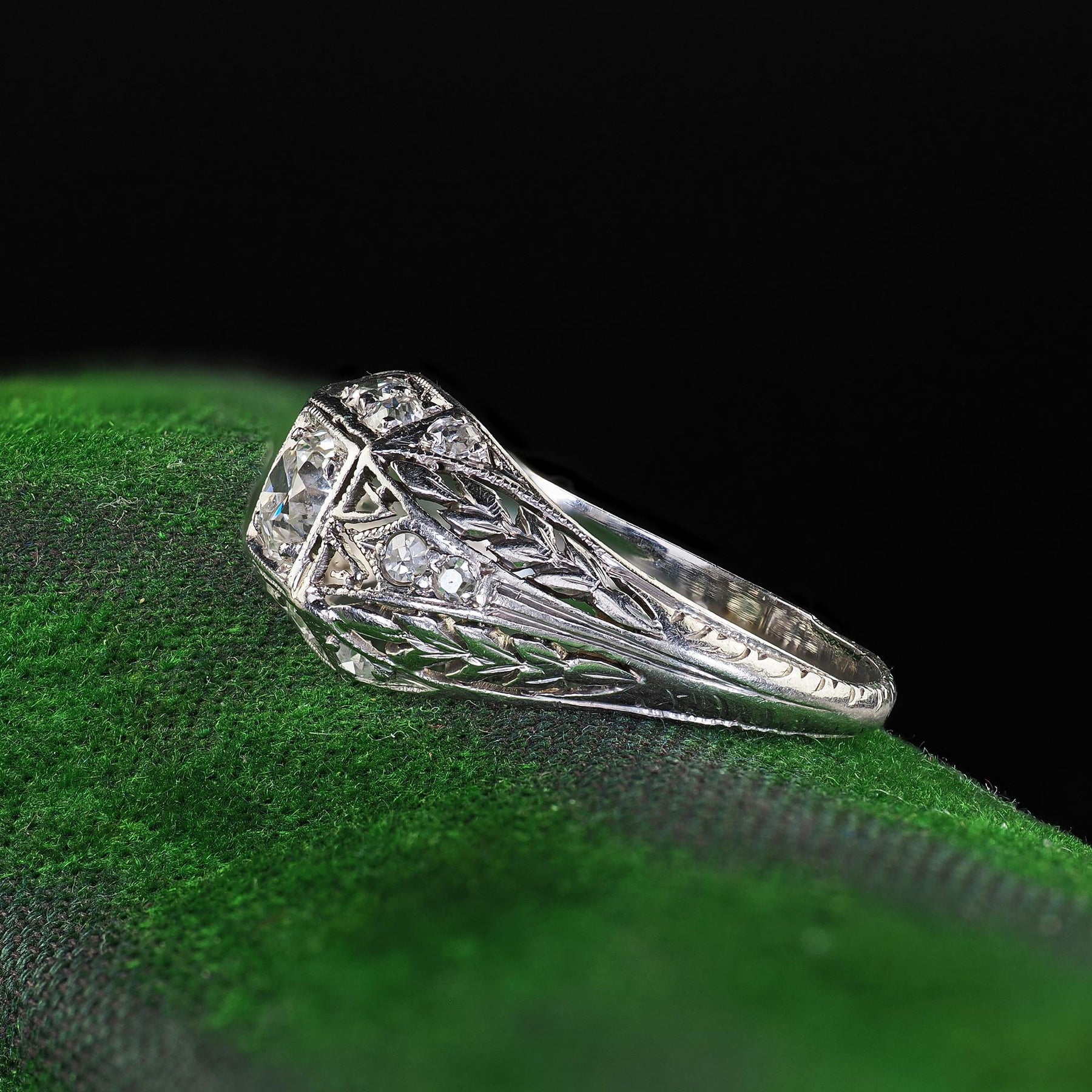 Antique Art Deco Platinum Old European Cut Diamond Filigree Engagement Ring