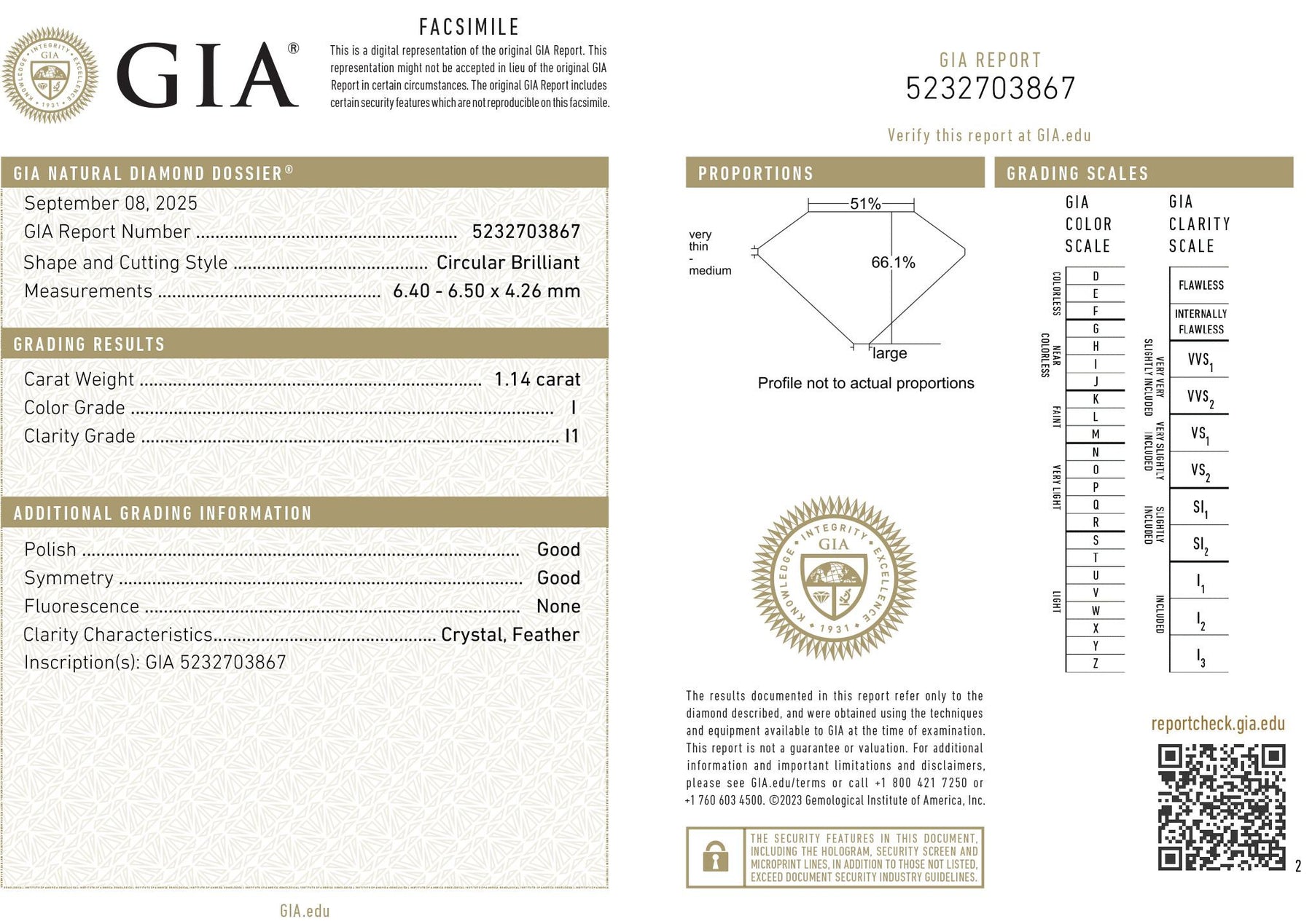 Center Diamond: 1.14 cts - GIA # 5232703867