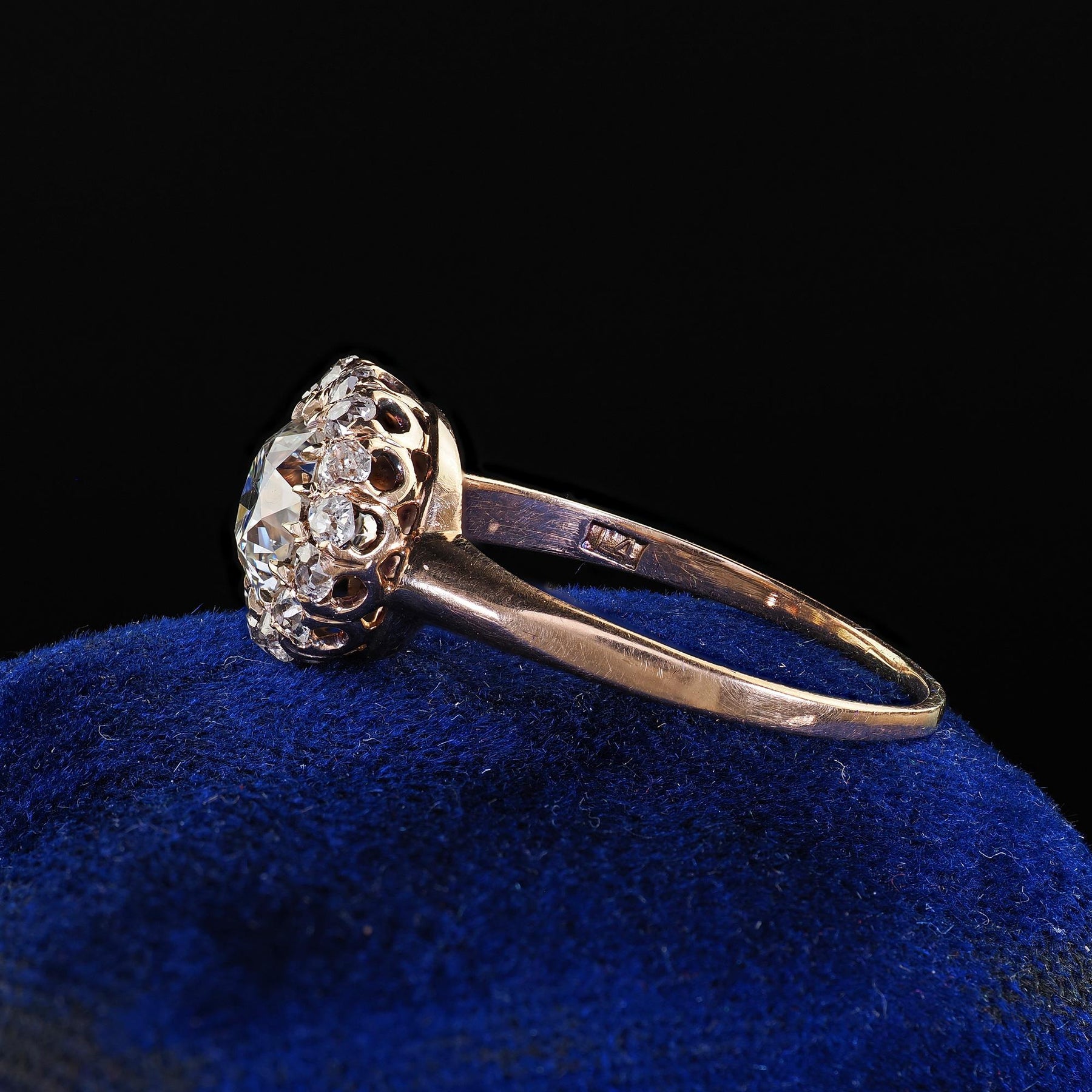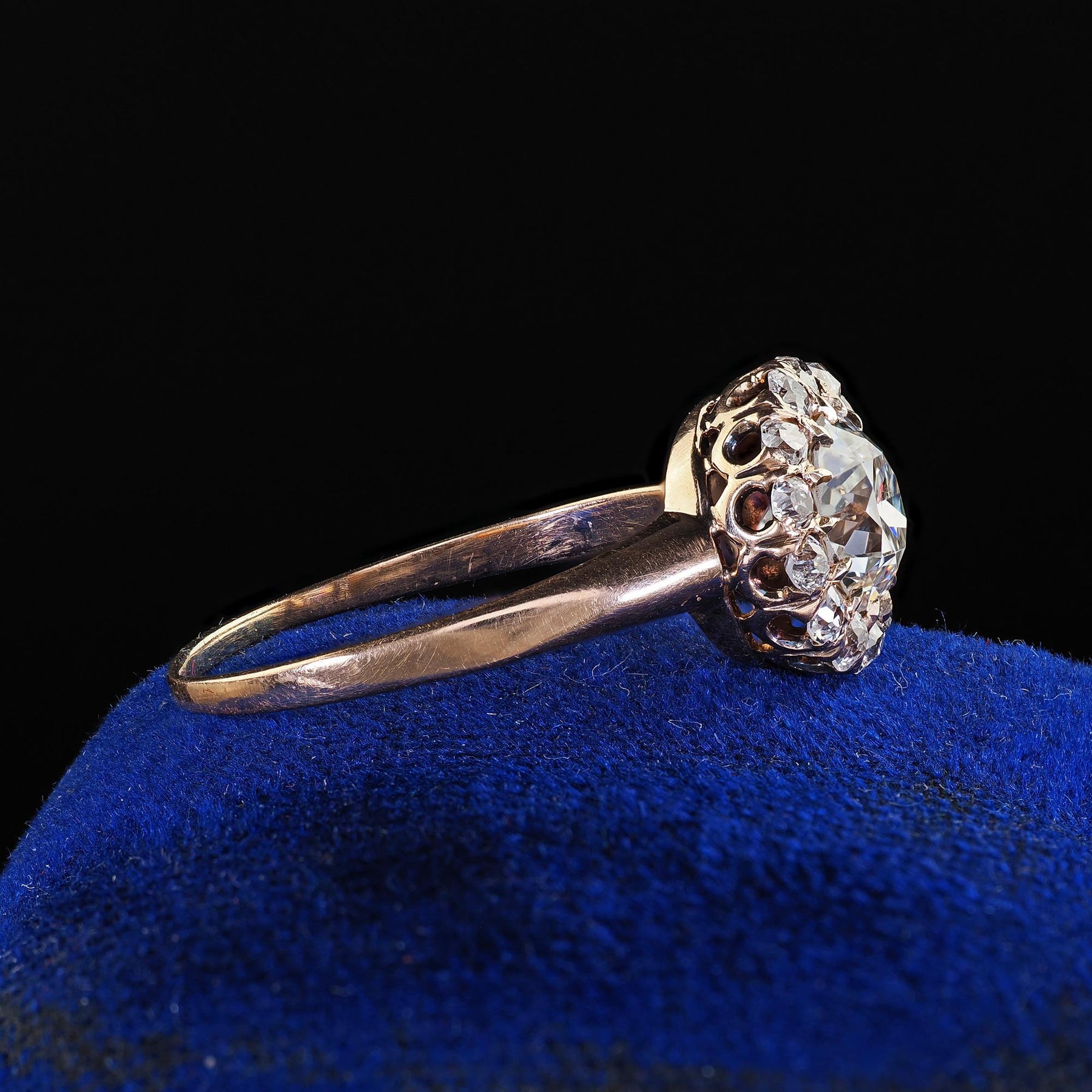 Antique Art Deco 14K Yellow Gold Old Euro Diamond Cluster Engagement Ring - GIA